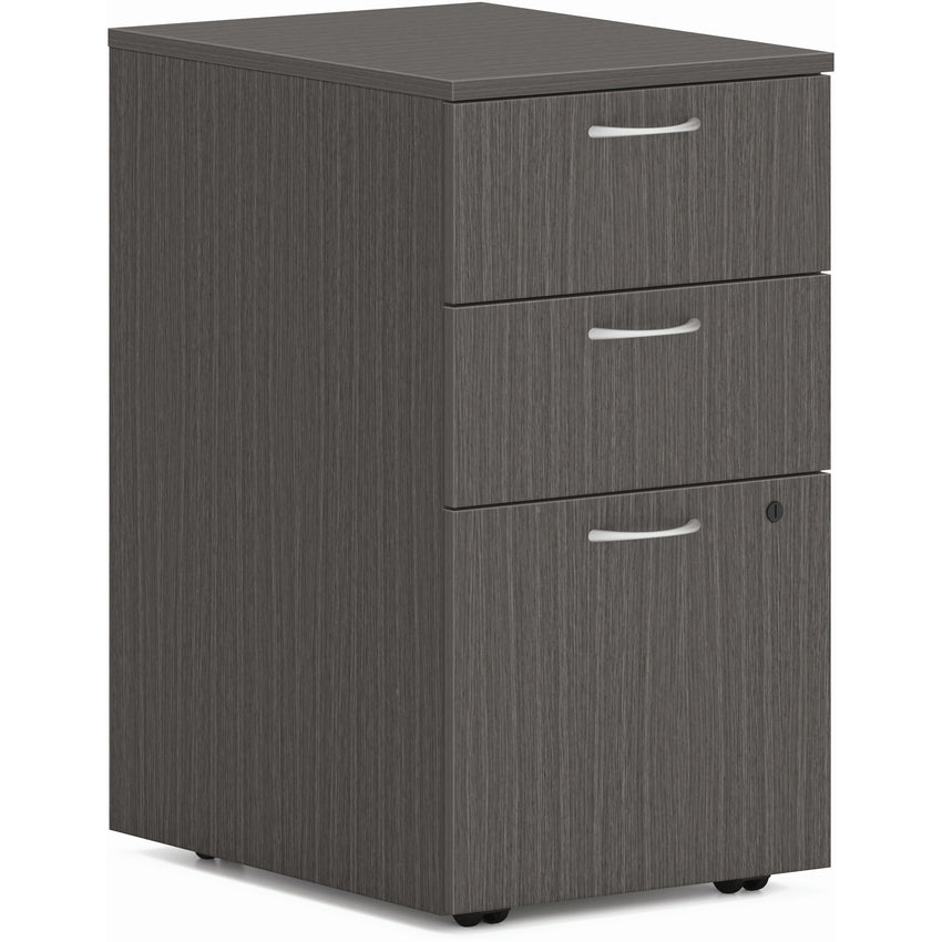Enhance your workspace organization with this 15" wide mobile pedestal, designed for both private offices and open floor plans. Featuring three spacious drawers—two box drawers for office supplies and personal items, and one file drawer for letter- or legal-size documents—this pedestal maximizes storage efficiency. Drawers operate smoothly with steel ball-bearing suspensions for quiet, effortless access. Durable laminate resists scratches, spills, and stains, maintaining a polished look in high-use environments. Its compact footprint and sturdy design make it an ideal complement to your workstation, while the finish seamlessly coordinates with other elements to create a cohesive office suite.