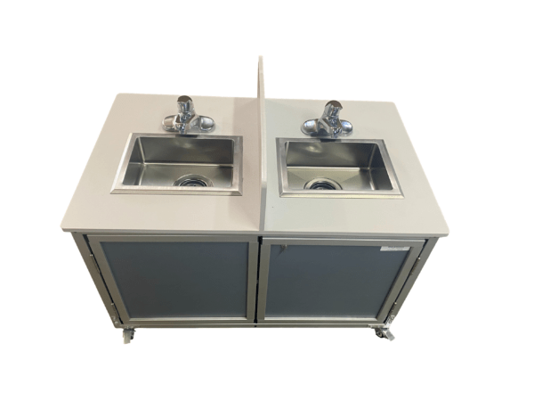 A perfect solution for busy daycare and community centers and preschools, the Toddler Double Basin Portable Sink allows two children at a time, access to warm and cold running water. More compact than the PSE 2006D model, it’s lightweight and easy to move. Store it out of sight when not needed, and roll it to a convenient spot at meal time or craft clean up. This daycare sink comes in a variety of colors to meet your room’s décor and the material can even accept your own decals or logos once it arrives. Call us today to order this portable sink for your daycare or program. WE can assure you, the children will like it.
