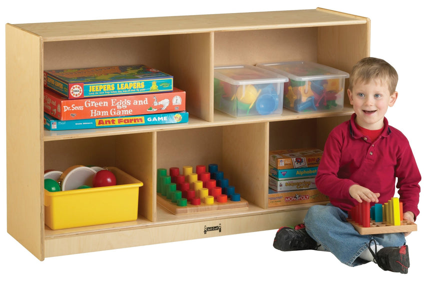 Jonti-Craft’s Baltic Birch Low Single Mobile Storage Unit has easy-to-reach shelves where you can store classroom supplies and learning aids. Keep larger toys and games on the generous shelves. Rounded edges protect toddlers from injuries, and laminate finish won't stain or scratch. Mounted on casters so it's easy to move around the room.