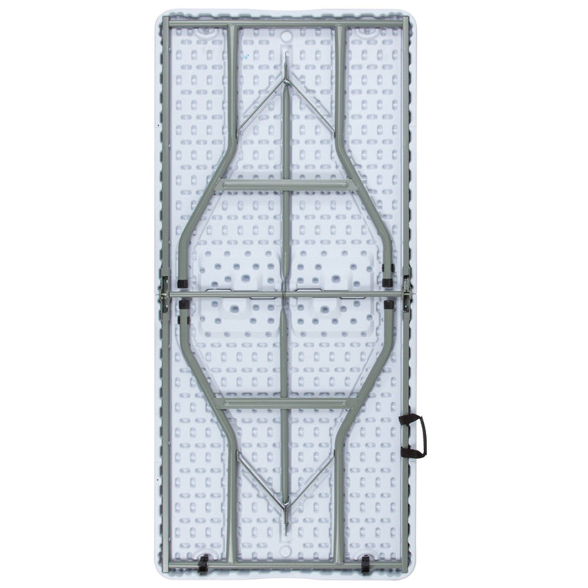 Be prepared to show off your art pieces, sell your accessories and products at the next Women's Expo or Men's Expo with this portable folding table. This 4.97' long banquet table accommodates up to 6 people and can help you seat extra dinner guests during parties and holiday gatherings. Built for commercial use this heavy-duty folding table makes appearances in restaurants, warehouses, schools, churches and rec centers. Folding tables can be used for all your sit-down activities and their legs lock when folded to be stored away afterward. This versatile centerfold table can be dressed up during holiday events, parties and special activities. Place multiple tables side by side or in rows to accommodate large party events. If you have hard flooring at your banquet hall or home the floor caps will prevent scratches and allow the table to glide smoothly. Easy to clean and store, plastic folding tables are the best and most popular option for any occasion. Although designed for indoor events this party table can be used outdoors on the deck or patio during good weather. Store the table indoors and protect the frame from extreme moisture. Get your ready to use rectangular folding table for your home or business today.