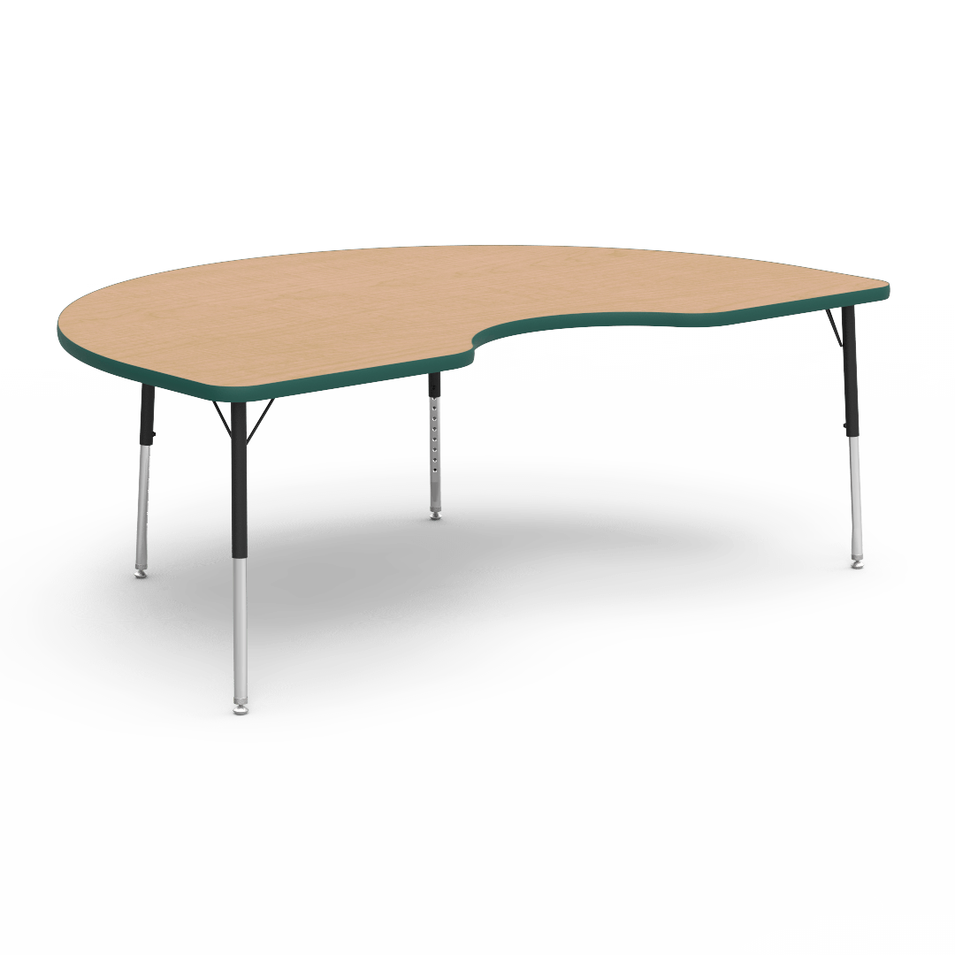 Virco 48KID72LO - 4000 Series Kidney Activity Table with Heavy Duty Laminate Top - Preschool Height Adjustable Legs (48"W x 72"L x 17"-25"H)