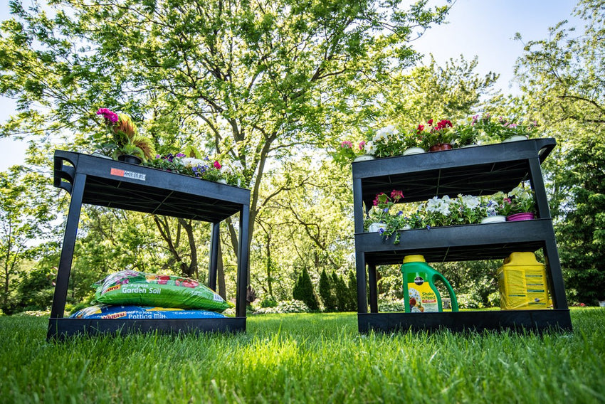 - Molded plastic shelves and legs will never rust, dent, scratch or stain