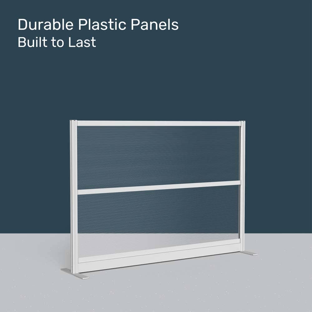 Create functional and stylish spaces with Luxor Modular Wall 70"W x 48"H - Corrugated Plastic with Gray Frame PPWL009 Luxor's Translucence Modular Walls. These lightweight, translucent panels offer privacy while allowing natural light to filter through, enhancing the ambiance of your workspace. Easily reconfigure your space to meet your evolving needs.
