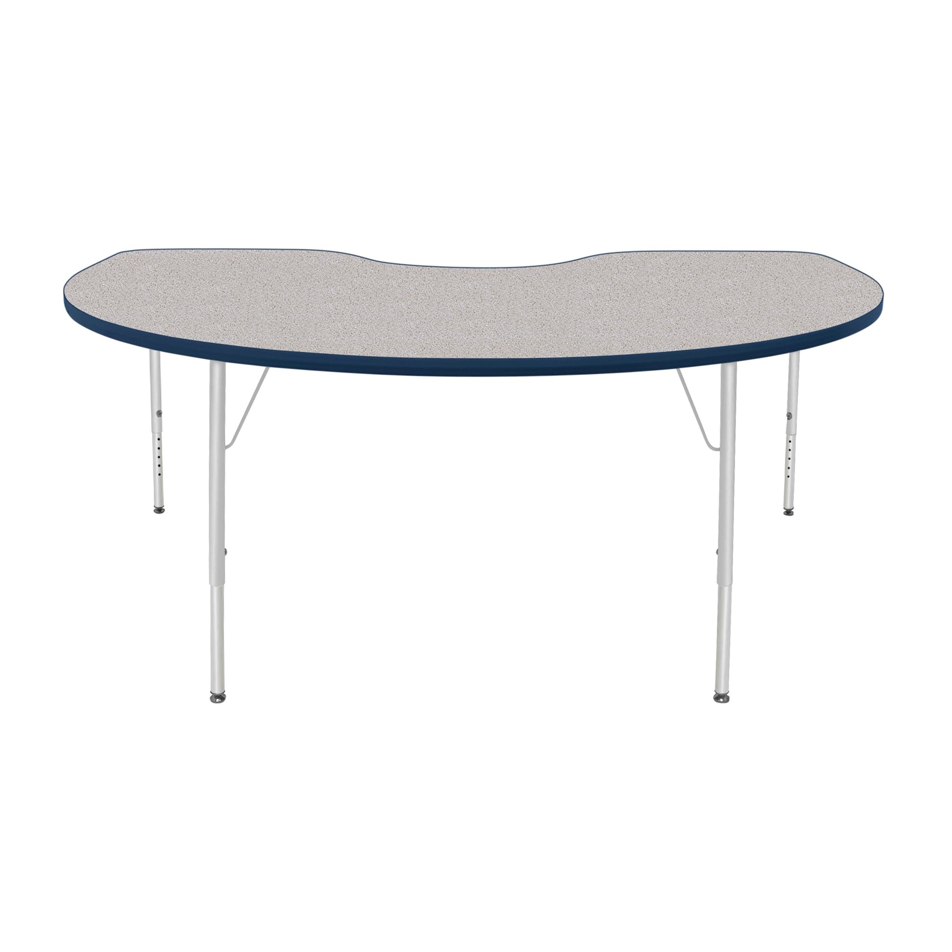 This unique kidney shaped activity table is perfect for your classroom. The bright high pressure laminate surface comes in your choice of seven finishes and your choice of a ball or a self-leveling glide with matching leg uppers in eleven trims. Moisture will not soak through the surface and the laminate is safe, non-toxic, and stain resistant on this classroom furniture table. Gum and other substances are easily removed and the durable rounded edges eliminate sharp corners.