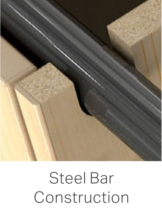 - Laminate: 3/4" thick 45# particleboard with thermofused melamine finish applied to both sides. All edges covered with machine applied 3mm PVC edge banding with hot melt glue.
