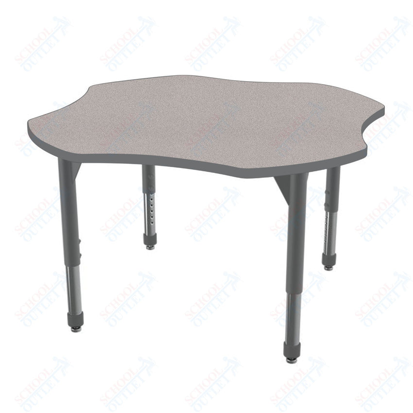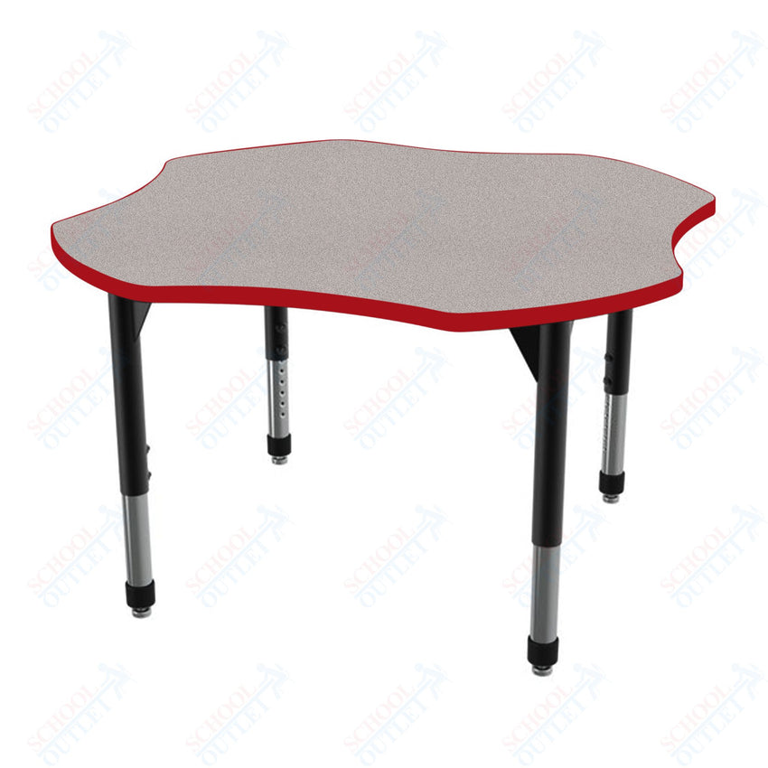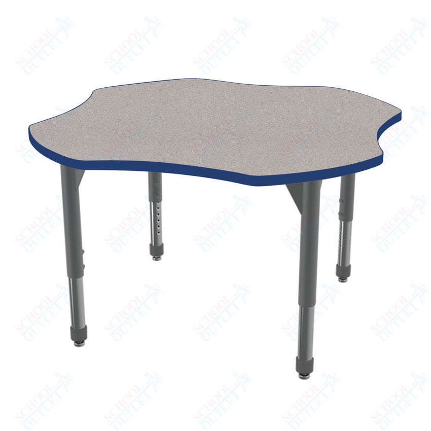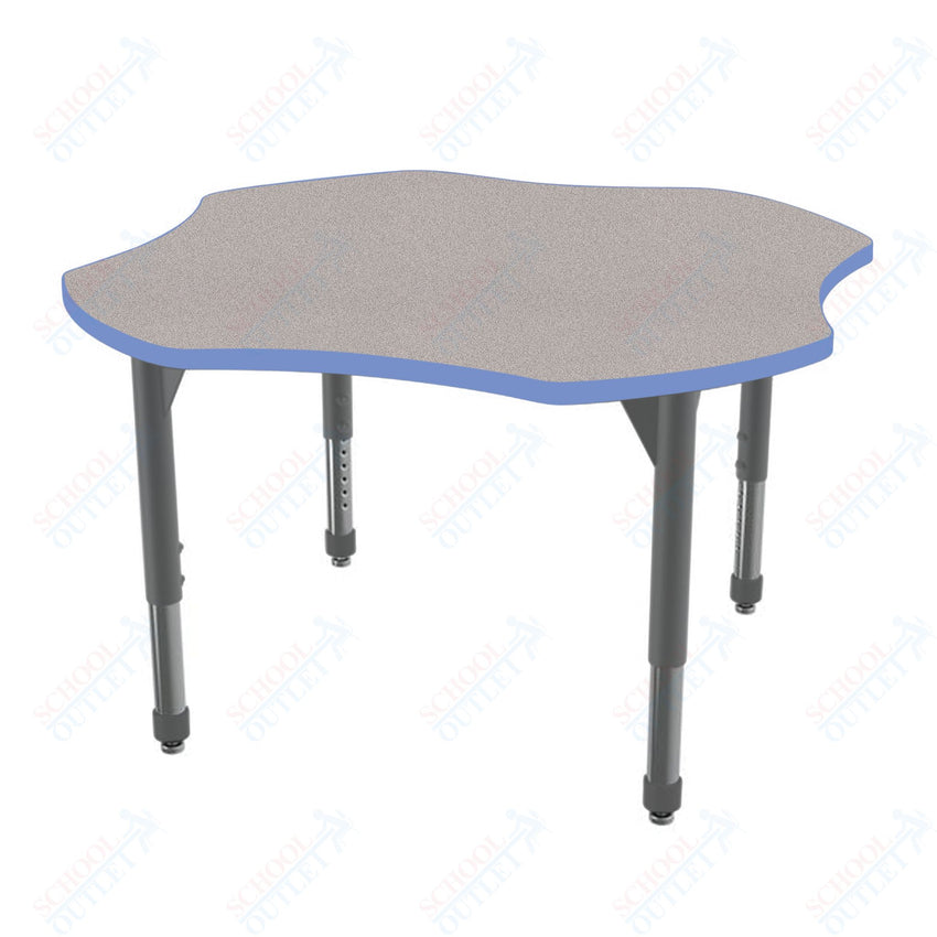 The Marco Premier Series 48" Clover Stand-up Table (43-2265-MA) is built to handle the demands of active classrooms while providing a versatile workspace for students. This table features a spacious Clover top measuring 48 inches Clover, ideal for individual or collaborative learning. It's constructed from 1-1/8" thick particleboard that's protected by a scratch-resistant melamine finish, making it ideal for everyday use by students. To ensure hygiene and safety, the edges are banded with 3mm PVC for additional protection.