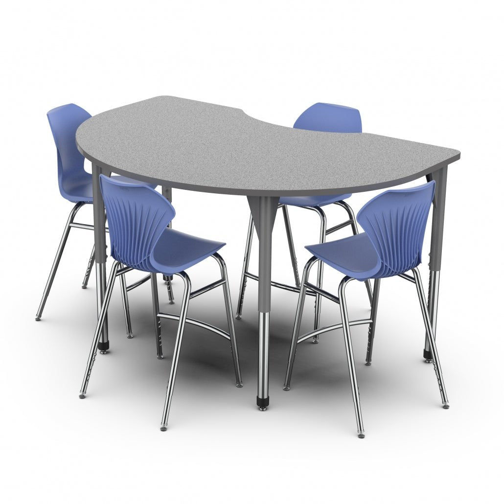 The Marco Premier Series Kidney School Activity Table (43-2267-MB) is designed to withstand the wear and tear of busy classrooms while providing a comfortable workspace for students. The tabletop boasts a spacious Kidney design measuring 36 inches wide by 72 inches long. It's constructed from 1-1/8" thick particleboard that's protected by a scratch-resistant melamine finish, making it ideal for everyday use by students. To ensure hygiene and safety, the edges are banded with 3mm PVC for additional protection.