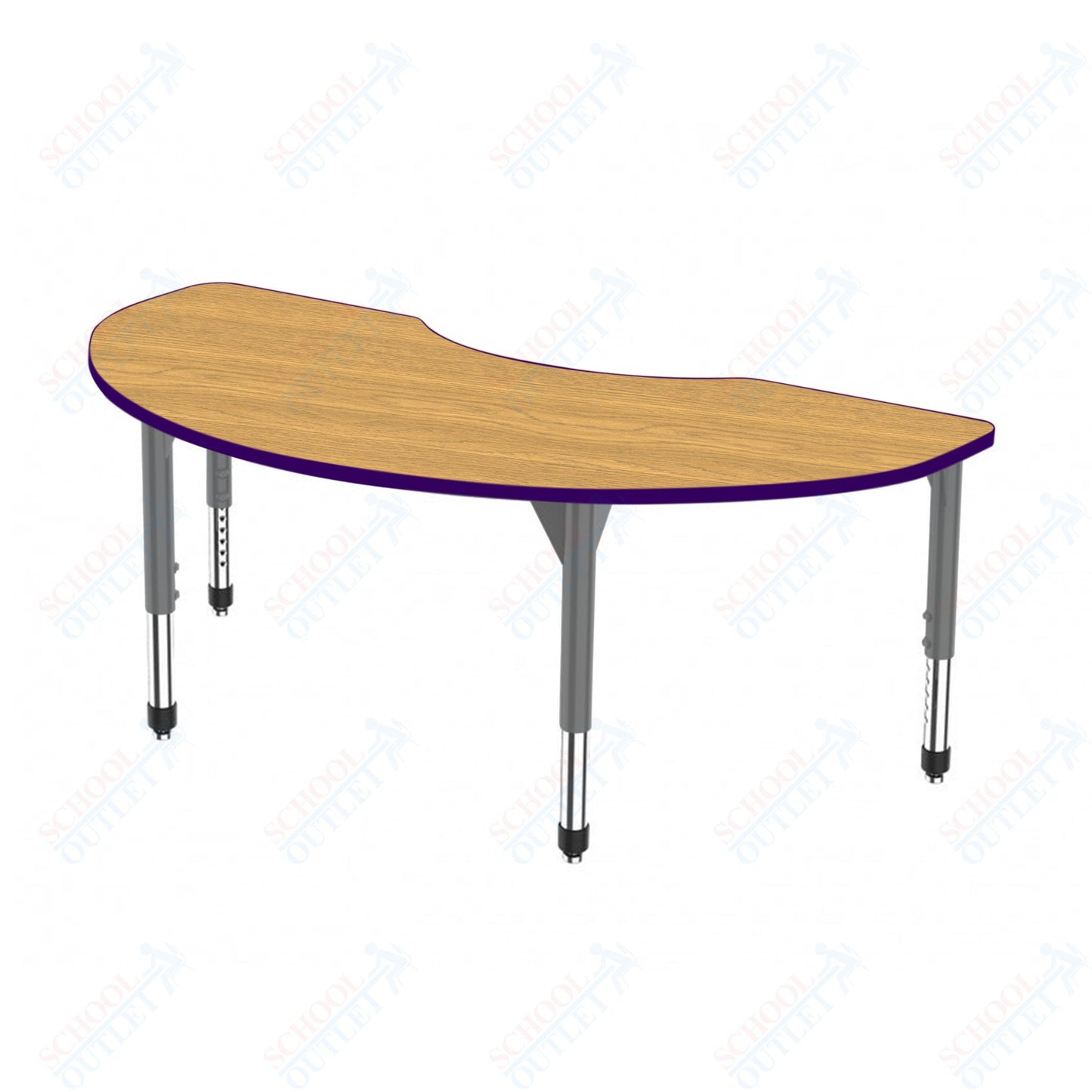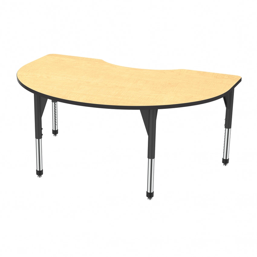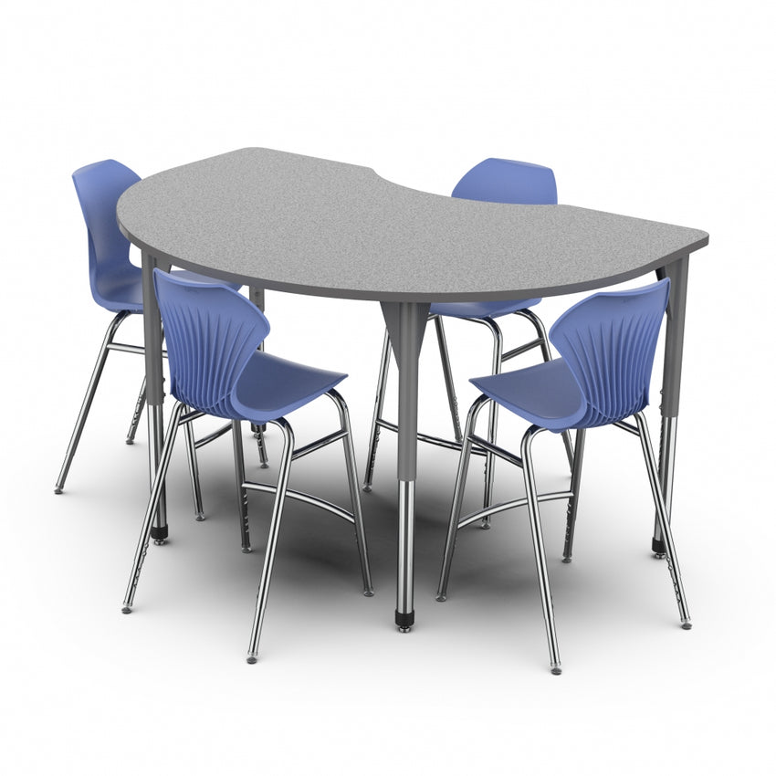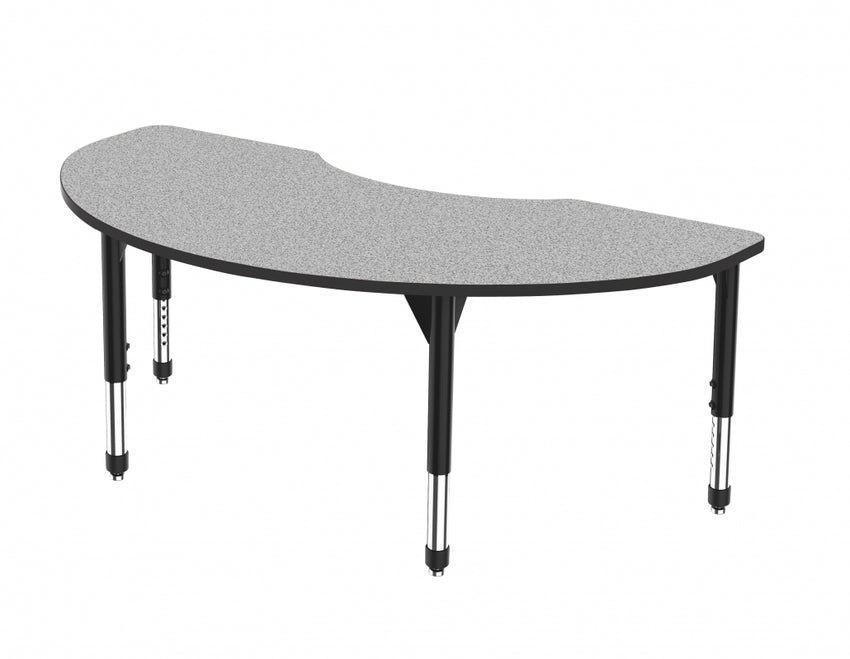 The Marco Premier Series Kidney Stand-up Table (43-2267-MA) is designed to withstand the wear and tear of busy classrooms while providing a comfortable workspace for students. The tabletop boasts a spacious Kidney design measuring 36 inches wide by 72 inches long. It's constructed from 1-1/8" thick particleboard that's protected by a scratch-resistant melamine finish, making it ideal for everyday use by students. To ensure hygiene and safety, the edges are banded with 3mm PVC for additional protection.
