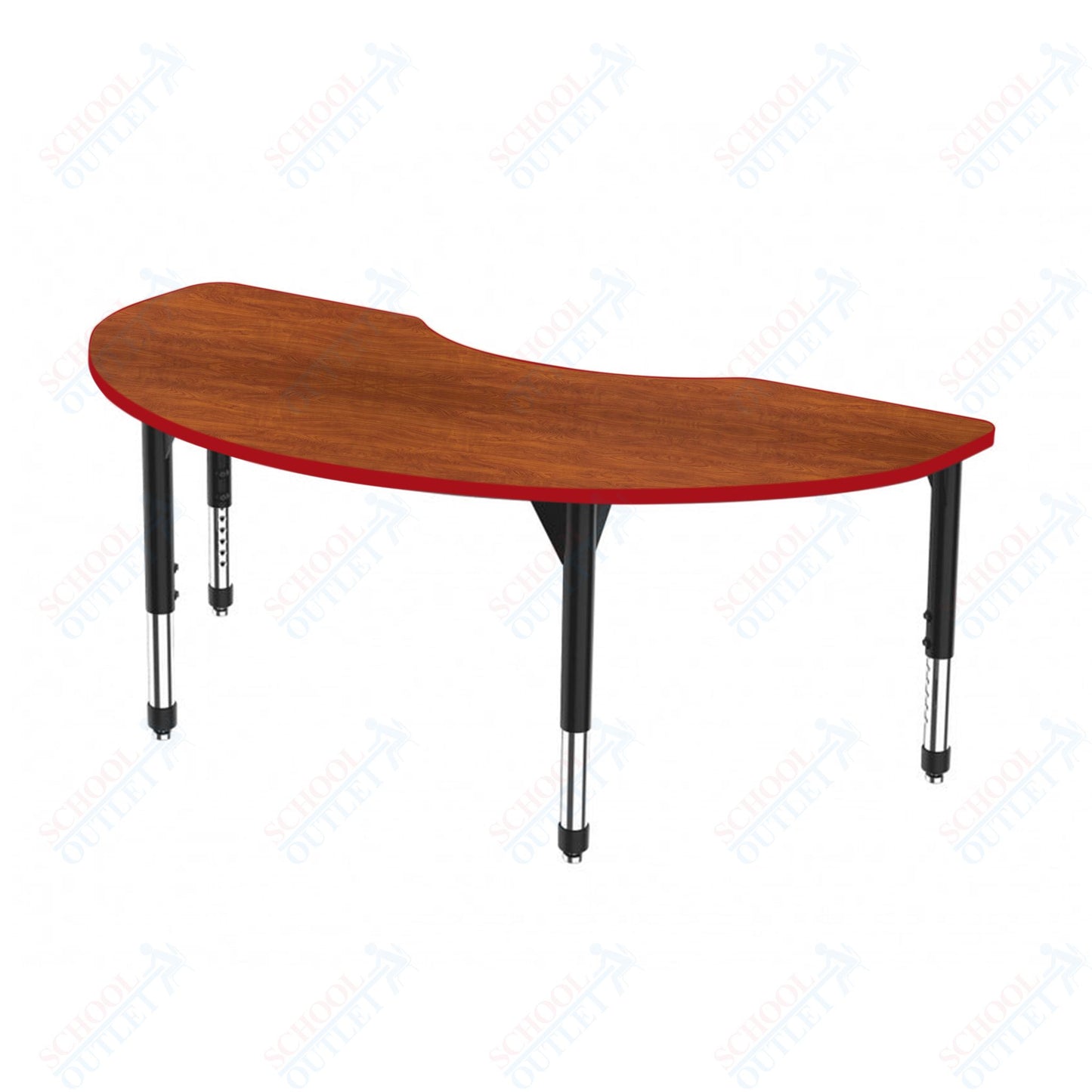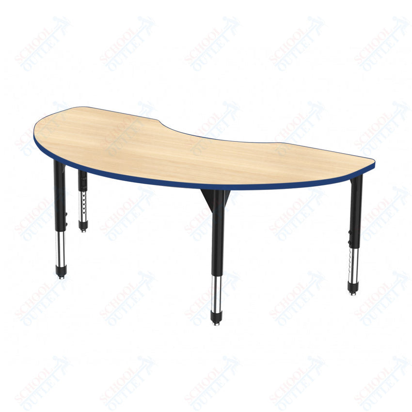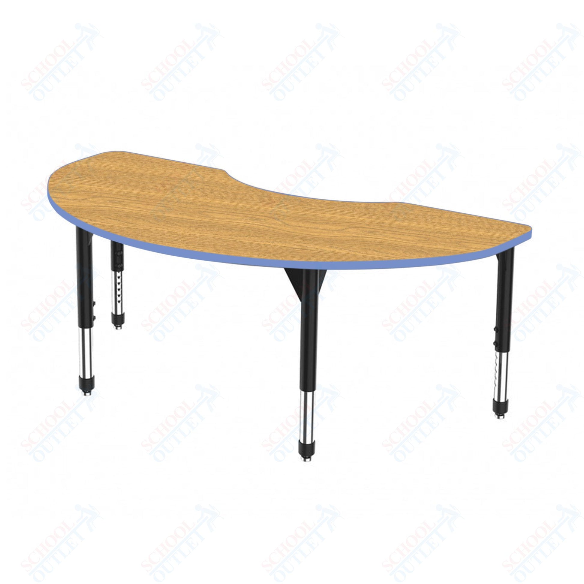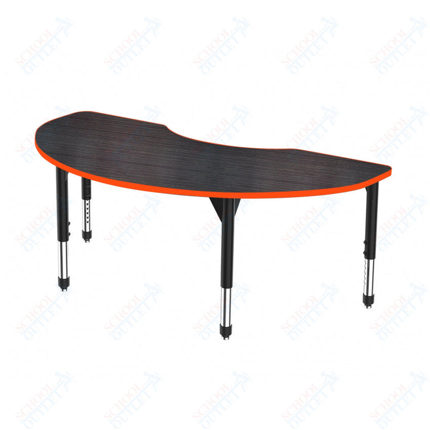 The Marco Premier Series Kidney Stand-up Table (43-2267-MA) is designed to withstand the wear and tear of busy classrooms while providing a comfortable workspace for students. The tabletop boasts a spacious Kidney design measuring 36 inches wide by 72 inches long. It's constructed from 1-1/8" thick particleboard that's protected by a scratch-resistant melamine finish, making it ideal for everyday use by students. To ensure hygiene and safety, the edges are banded with 3mm PVC for additional protection.
