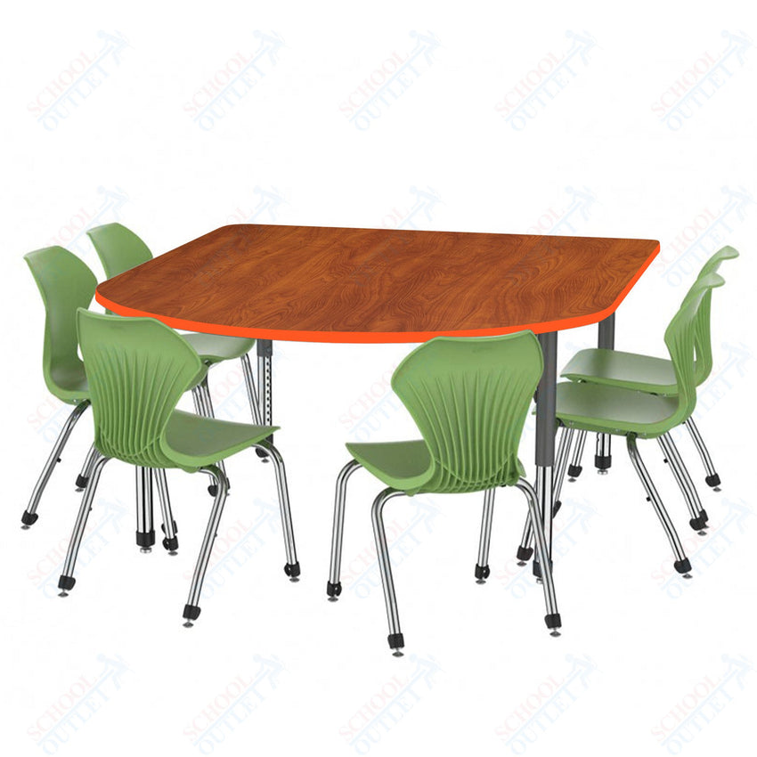 The Marco Premier Series Multimedia Table, model 43-2261-MB, is a versatile and durable solution for integrating technology into collaborative learning environments. With a generous 60" x 72" surface and an adjustable height range of 21"-31", this table is ideal for presentations, conferences, media training, and more. It comfortably seats six individuals, making it perfect for group discussions and activities. The table's top is constructed from 1 1/8" particleboard with a thermo-fused melamine surface on both sides, offering durability and a sleek finish. The 3mm PVC edge banding, secured with hot-melt adhesive, provides additional protection against wear and tear.