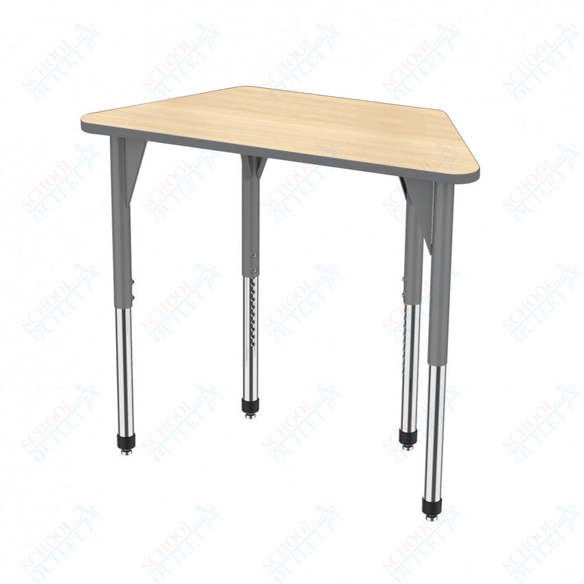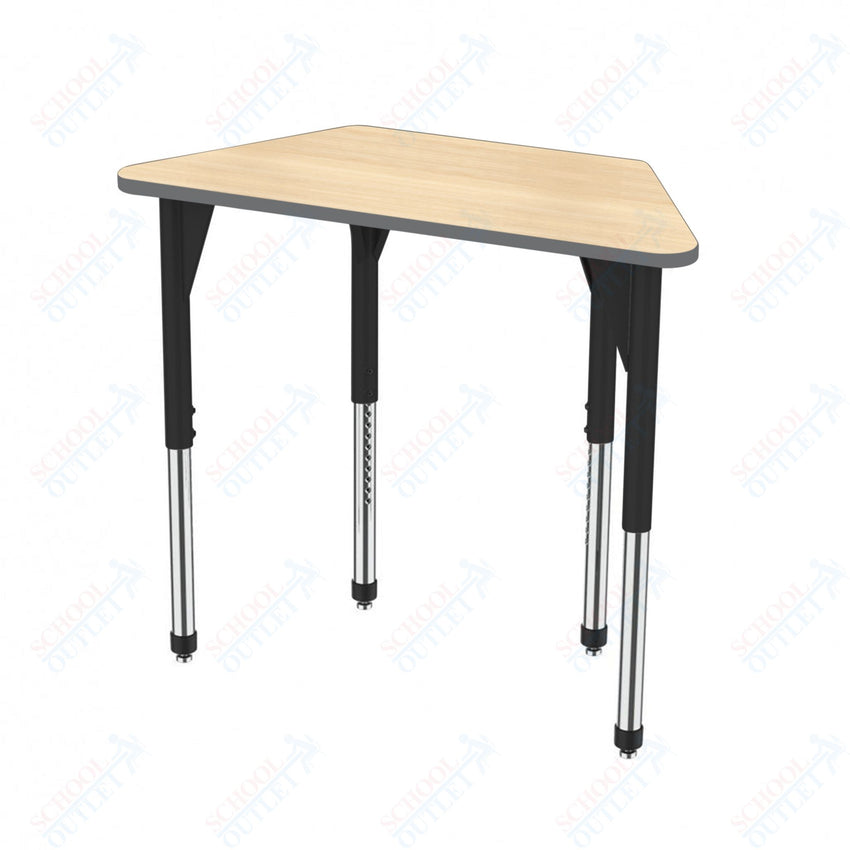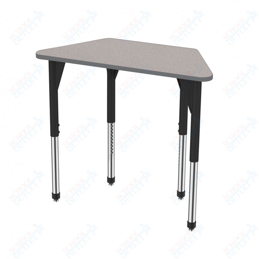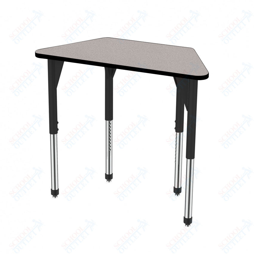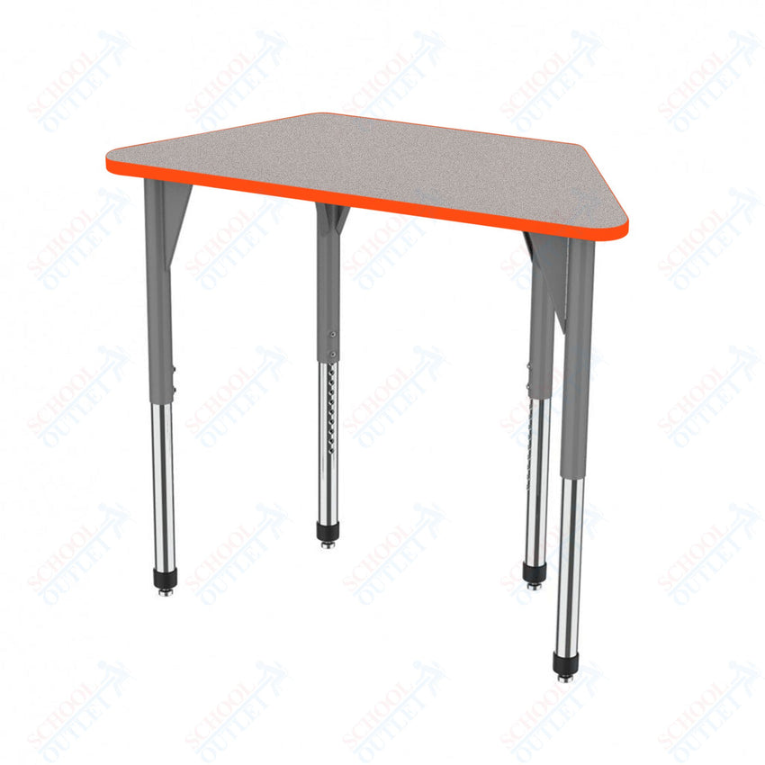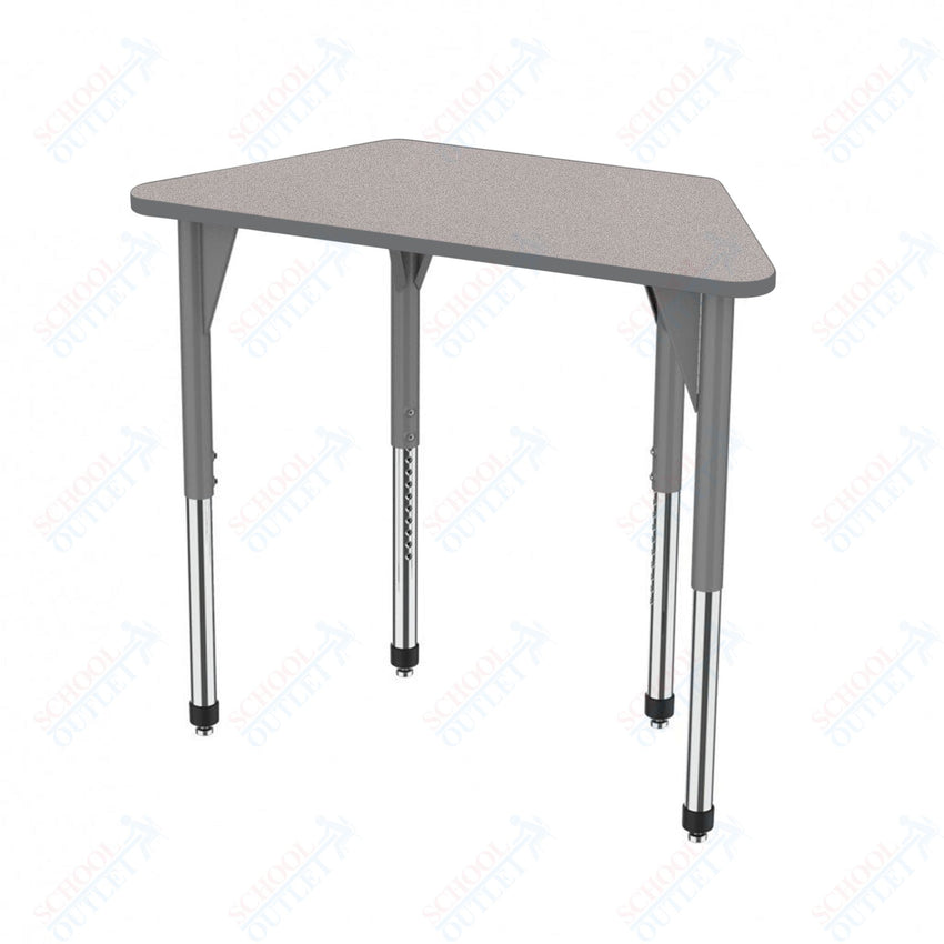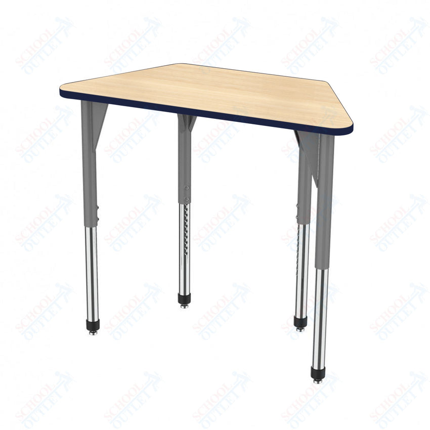 The Marco Premier Series Trapezoid Stand-up Table (43-2287-MA) is designed to withstand the wear and tear of busy classrooms while providing a comfortable workspace for students. The tabletop boasts a spacious Trapezoid design measuring 30 inches wide by 60 inches long. It's constructed from 1-1/8" thick particleboard that's protected by a scratch-resistant melamine finish, making it ideal for everyday use by students. To ensure hygiene and safety, the edges are banded with 3mm PVC for additional protection.