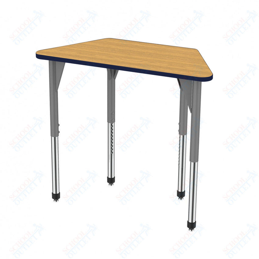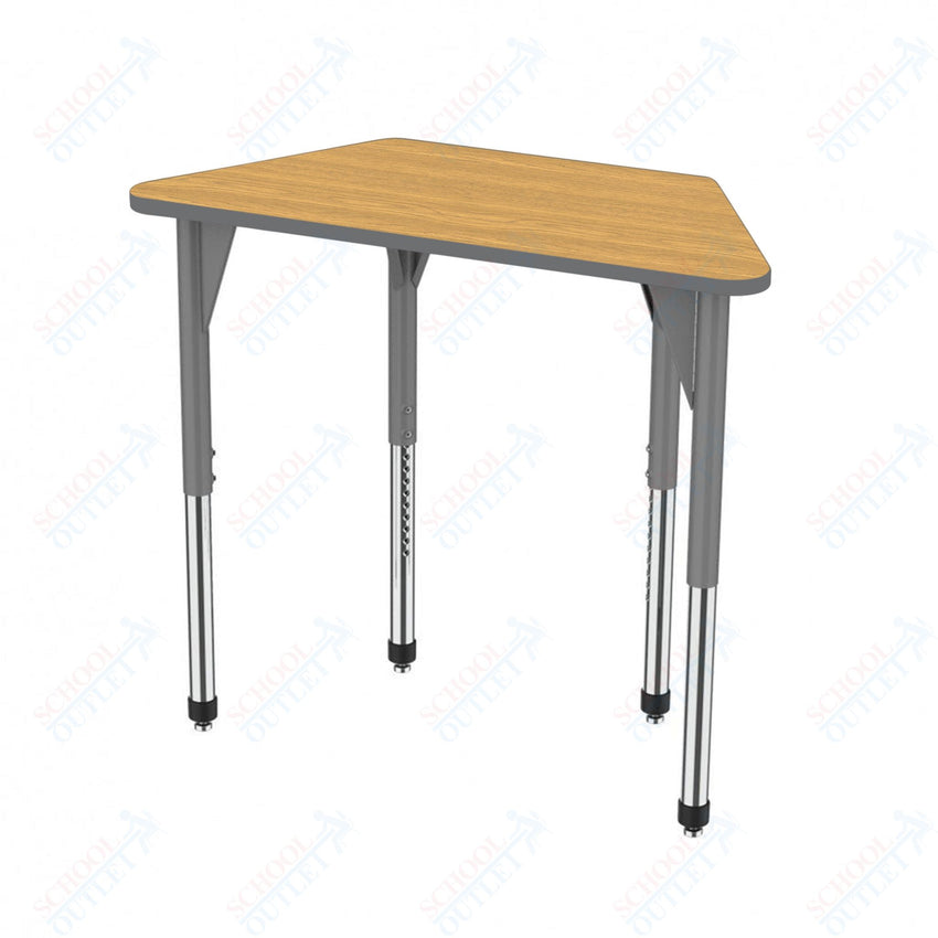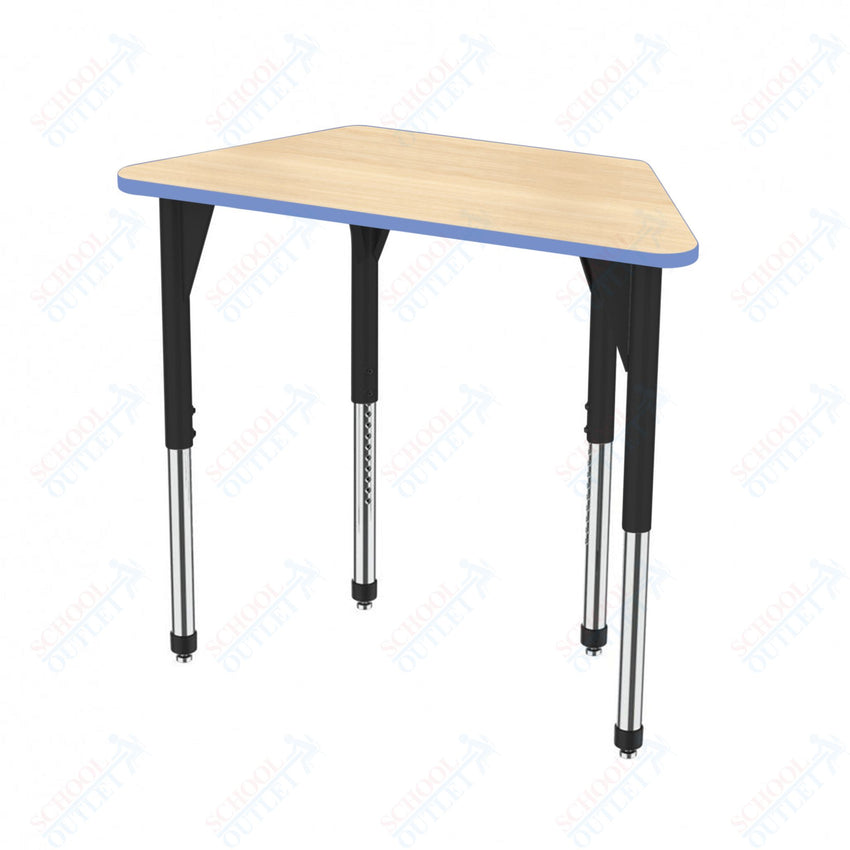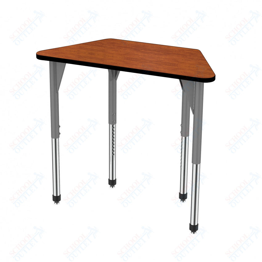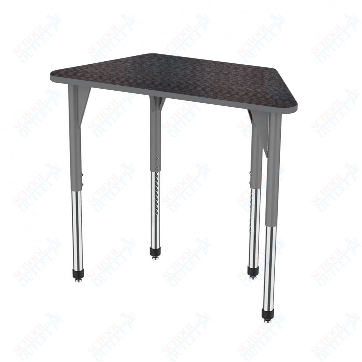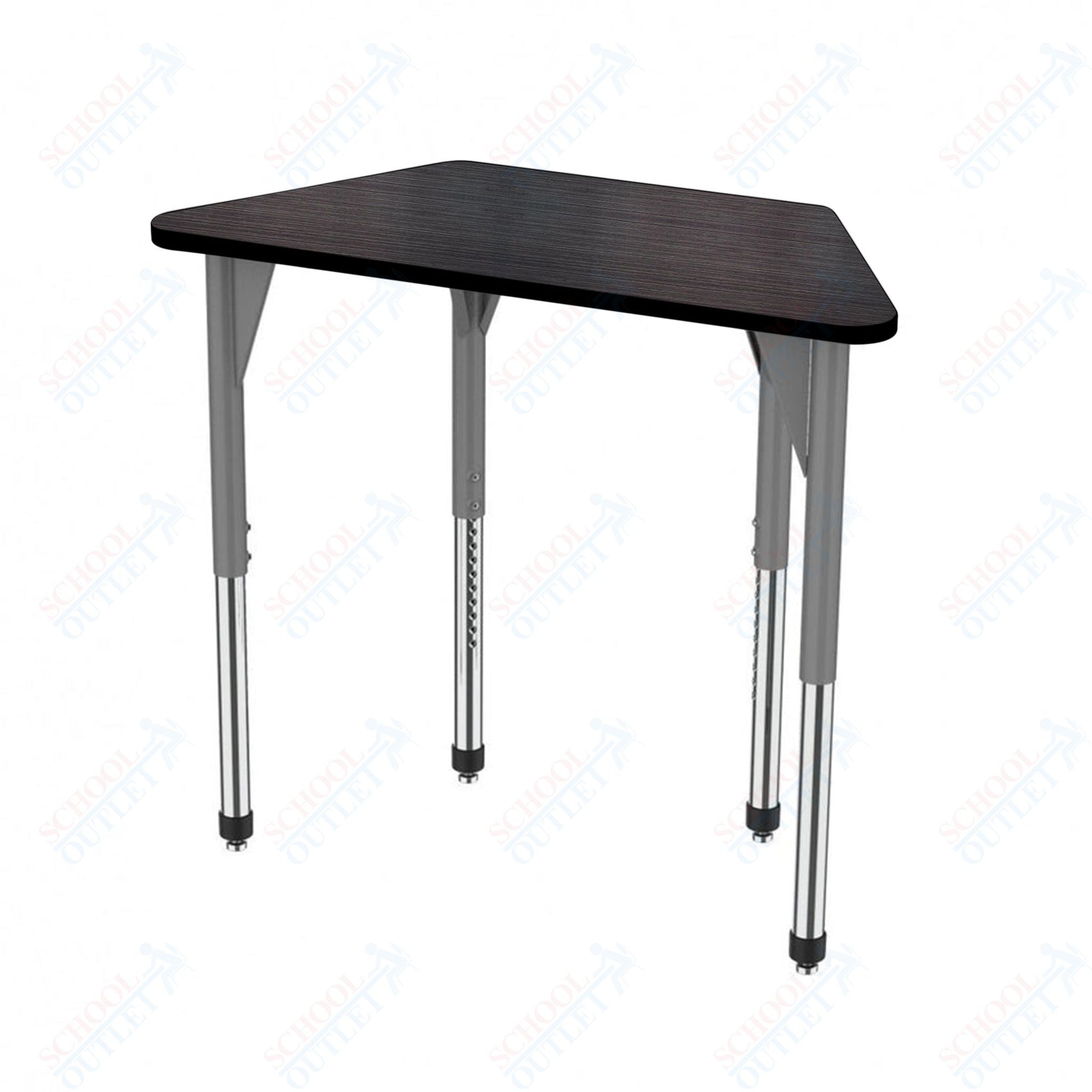 The Marco Premier Series Trapezoid Stand-up Table (43-2287-MA) is designed to withstand the wear and tear of busy classrooms while providing a comfortable workspace for students. The tabletop boasts a spacious Trapezoid design measuring 30 inches wide by 60 inches long. It's constructed from 1-1/8" thick particleboard that's protected by a scratch-resistant melamine finish, making it ideal for everyday use by students. To ensure hygiene and safety, the edges are banded with 3mm PVC for additional protection.