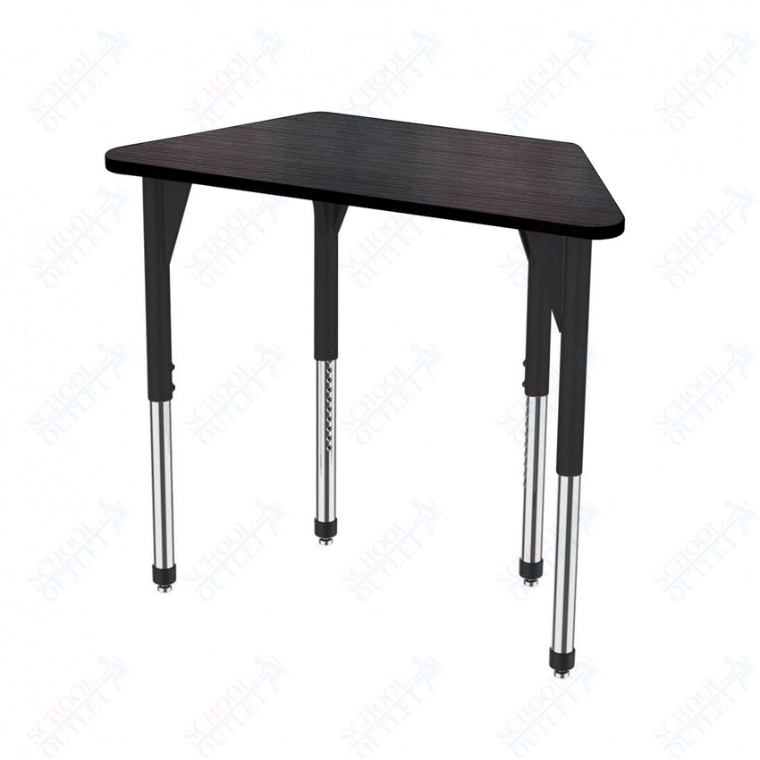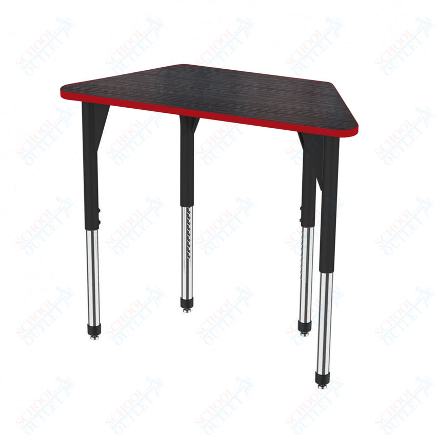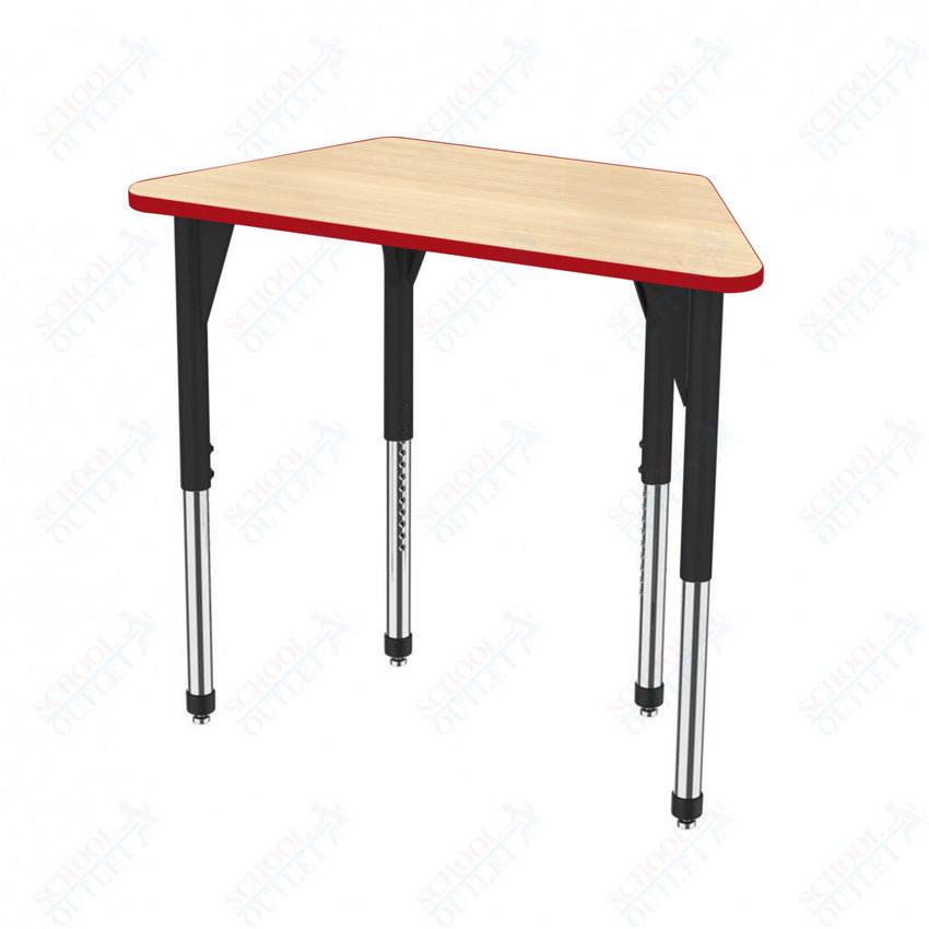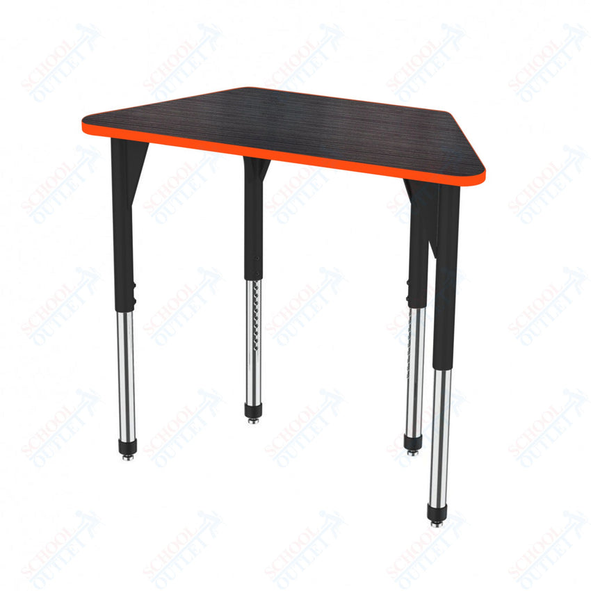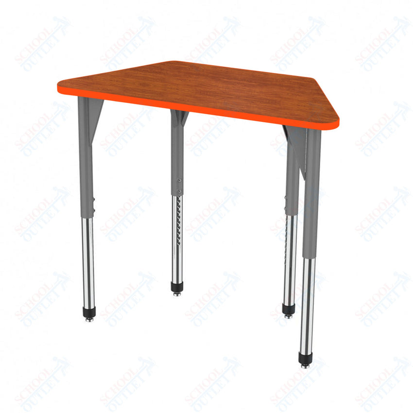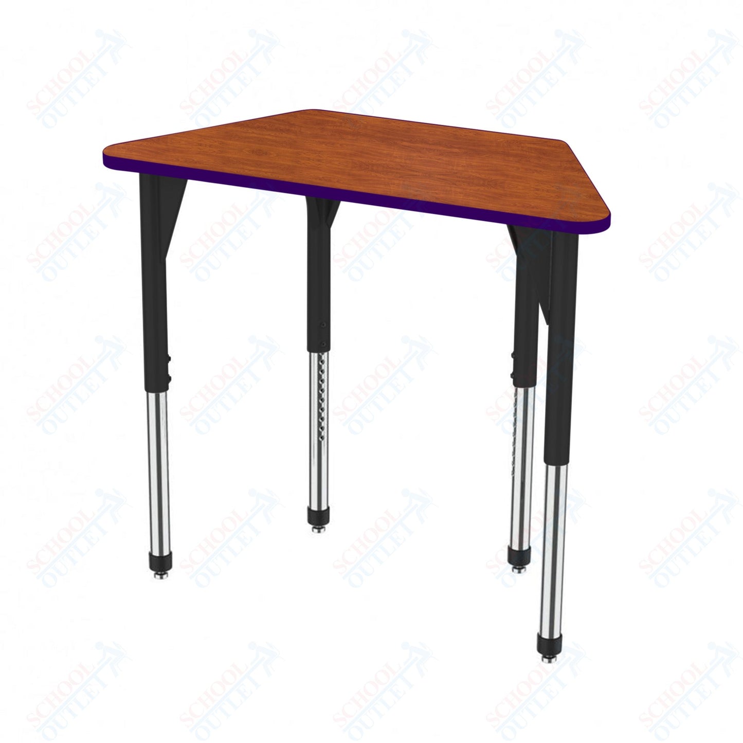 The Marco Premier Series Trapezoid Stand-up Table (43-2287-MA) is designed to withstand the wear and tear of busy classrooms while providing a comfortable workspace for students. The tabletop boasts a spacious Trapezoid design measuring 30 inches wide by 60 inches long. It's constructed from 1-1/8" thick particleboard that's protected by a scratch-resistant melamine finish, making it ideal for everyday use by students. To ensure hygiene and safety, the edges are banded with 3mm PVC for additional protection.
