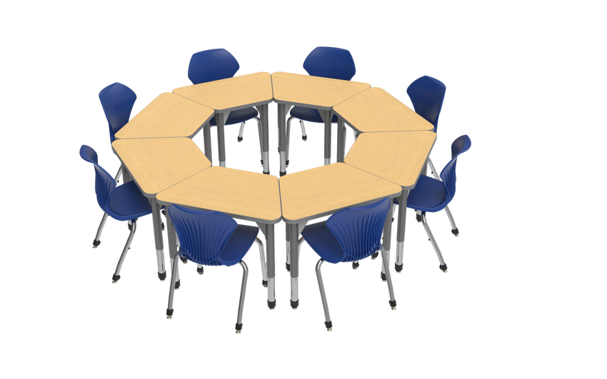 The Marco Premier Series Trapezoid Student Desk (43-2283-MB) is designed to withstand the wear and tear of classrooms. The Marco Premier Series Desk features height-adjustable legs, made of powder-coated tubular steel with a chrome-plated finish, that goes from 21" to 31" in 1-inch increments, allowing you to customize it for different age groups or needs. The 1-1/8" thick particleboard top is laminated with a scratch-resistant melamine finish, making it ideal for busy learning environments.