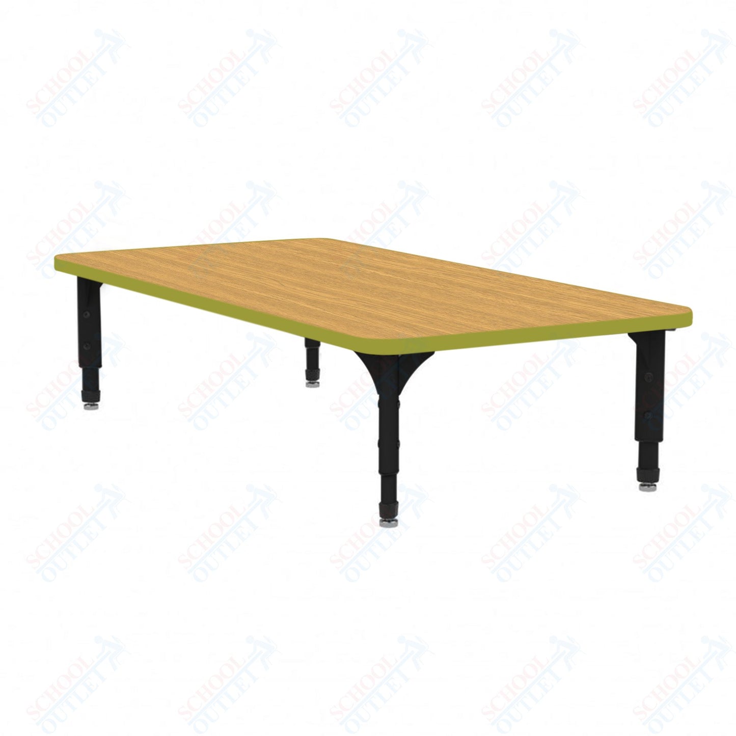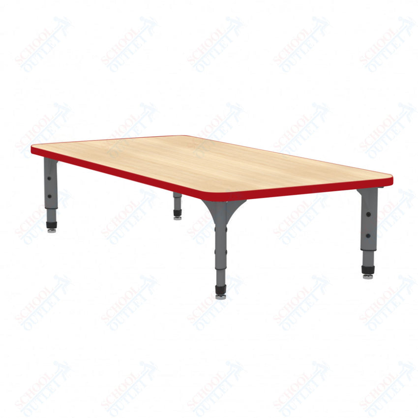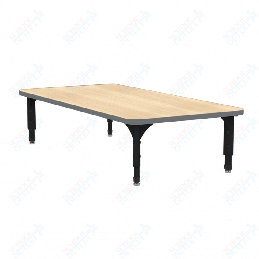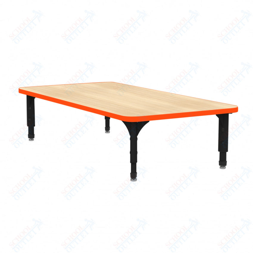 The Marco Rectangular Floor Table (38-2226-MC) is low height table allow students to sit and learn in a more home-like positioning, which has shown to improve student engagement and perseverance. The tabletop boasts a spacious rectangular design measuring 24 inches wide by 48 inches long. It's constructed from 1-1/8" thick particleboard that's protected by a scratch-resistant melamine finish, making it ideal for everyday use by students. To ensure hygiene and safety, the edges are banded with 3mm PVC for additional protection.