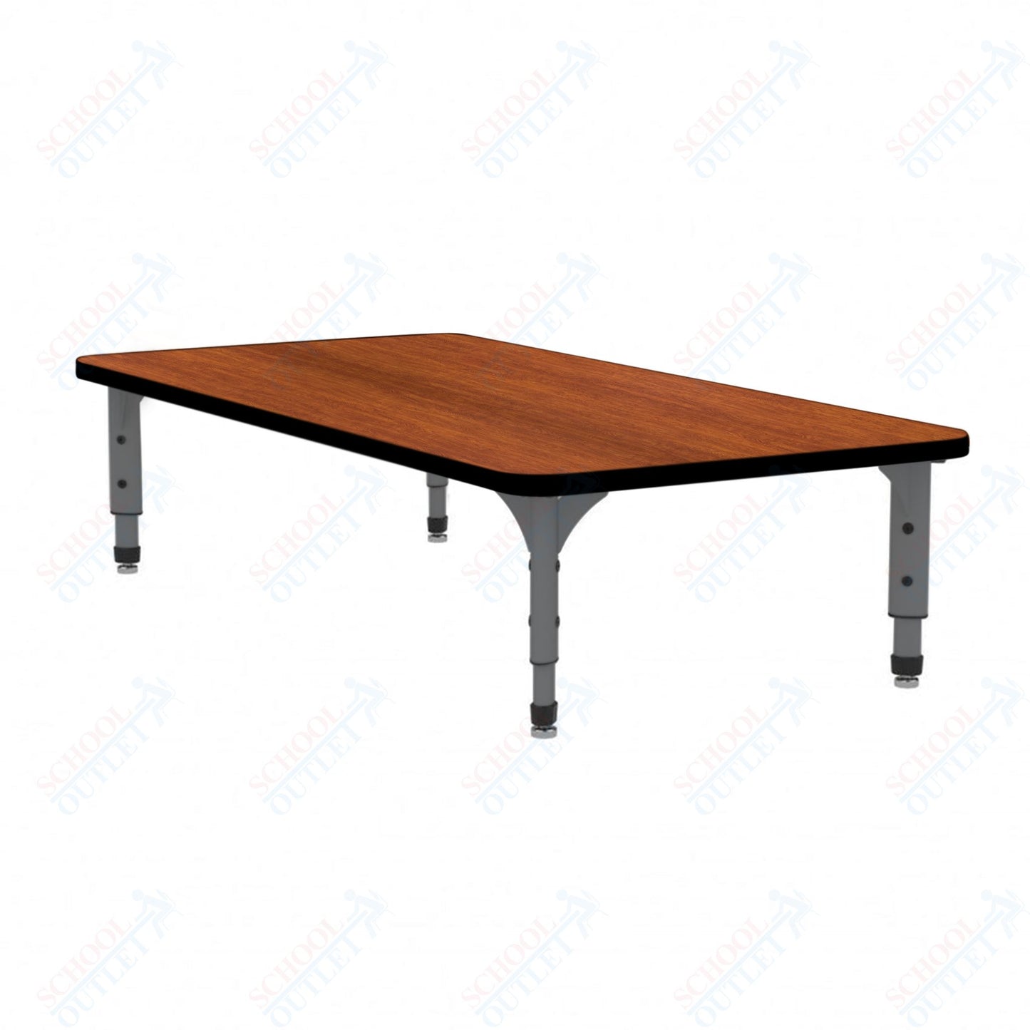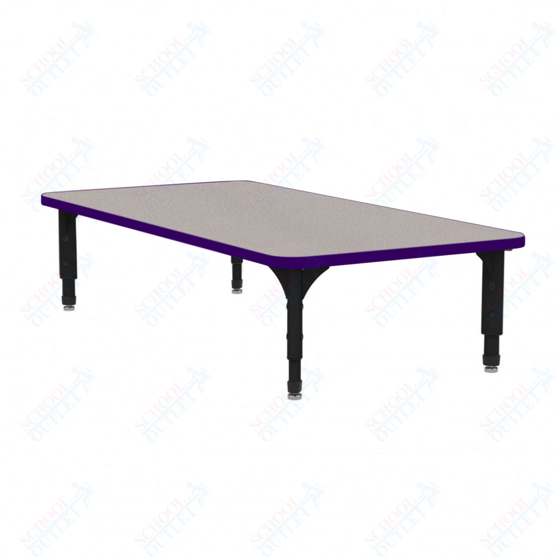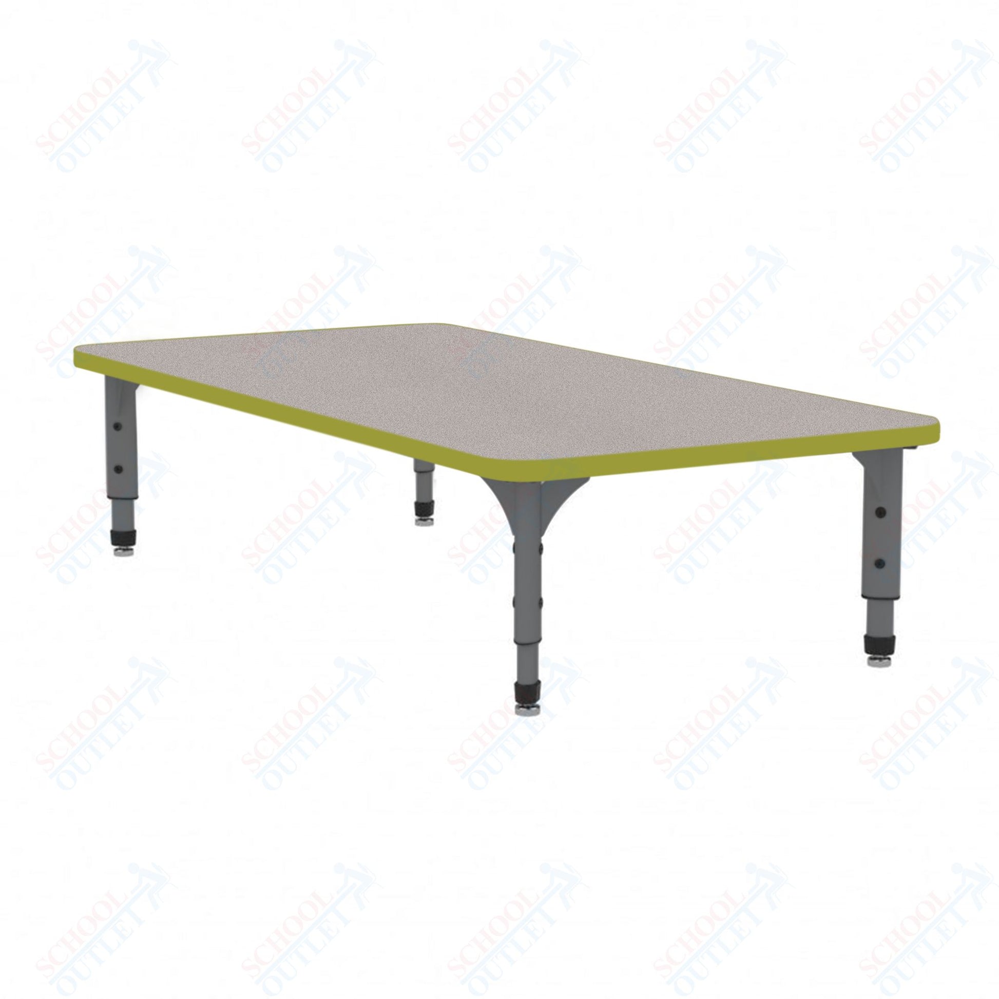 The Marco Rectangular Floor Table (38-2226-MC) is low height table allow students to sit and learn in a more home-like positioning, which has shown to improve student engagement and perseverance. The tabletop boasts a spacious rectangular design measuring 24 inches wide by 48 inches long. It's constructed from 1-1/8" thick particleboard that's protected by a scratch-resistant melamine finish, making it ideal for everyday use by students. To ensure hygiene and safety, the edges are banded with 3mm PVC for additional protection.