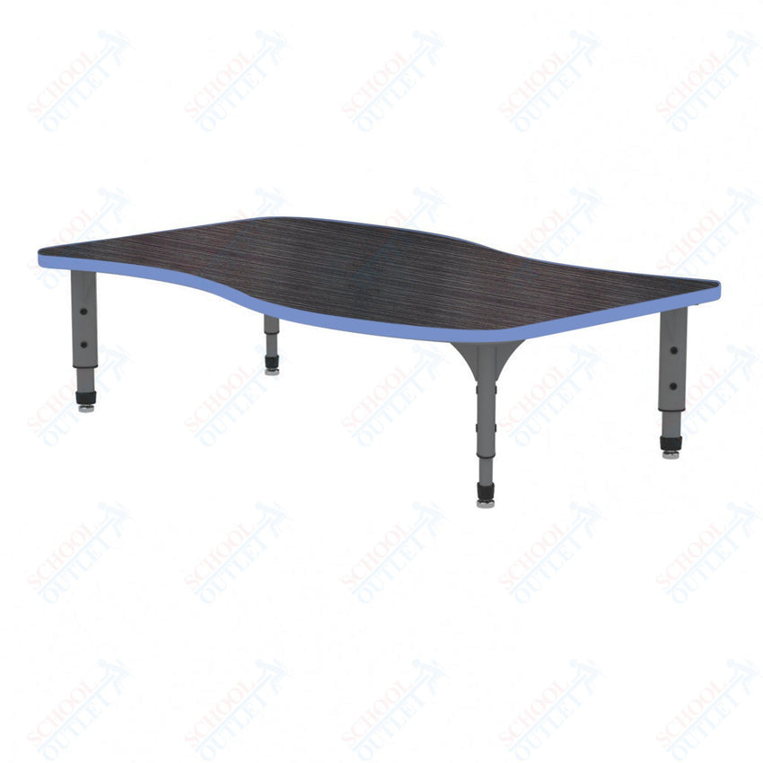 The Marco Wave Floor Table (38-2258-MC) is low height table allow students to sit and learn in a more home-like positioning, which has shown to improve student engagement and perseverance. The tabletop boasts a spacious Wave design measuring 30 inches wide by 54 inches long. It's constructed from 1-1/8" thick particleboard that's protected by a scratch-resistant melamine finish, making it ideal for everyday use by students. To ensure hygiene and safety, the edges are banded with 3mm PVC for additional protection.