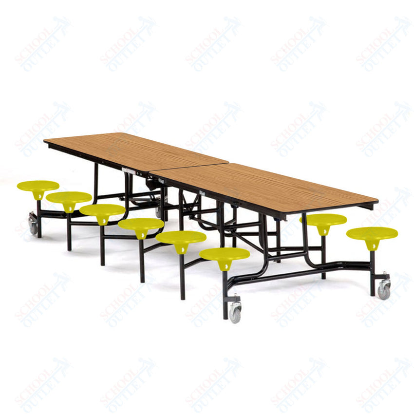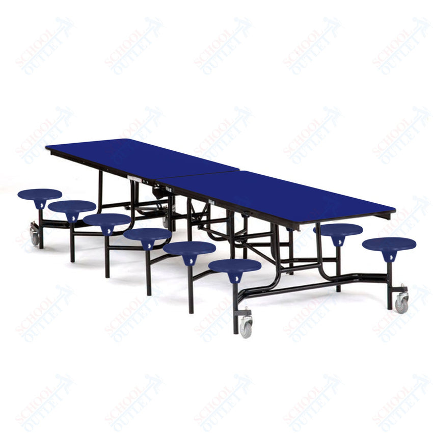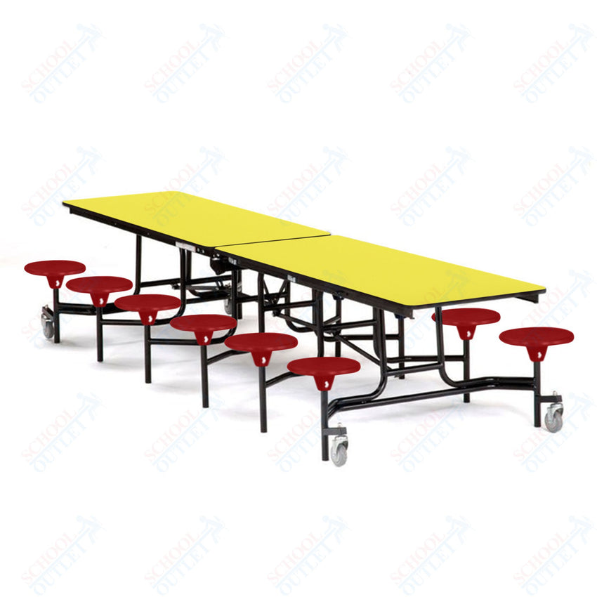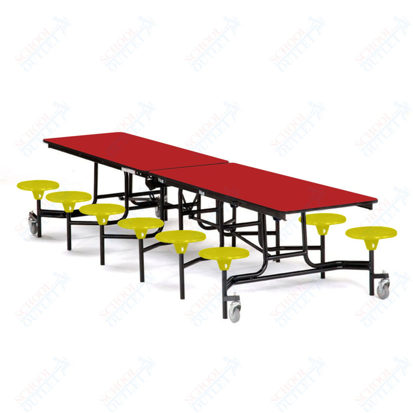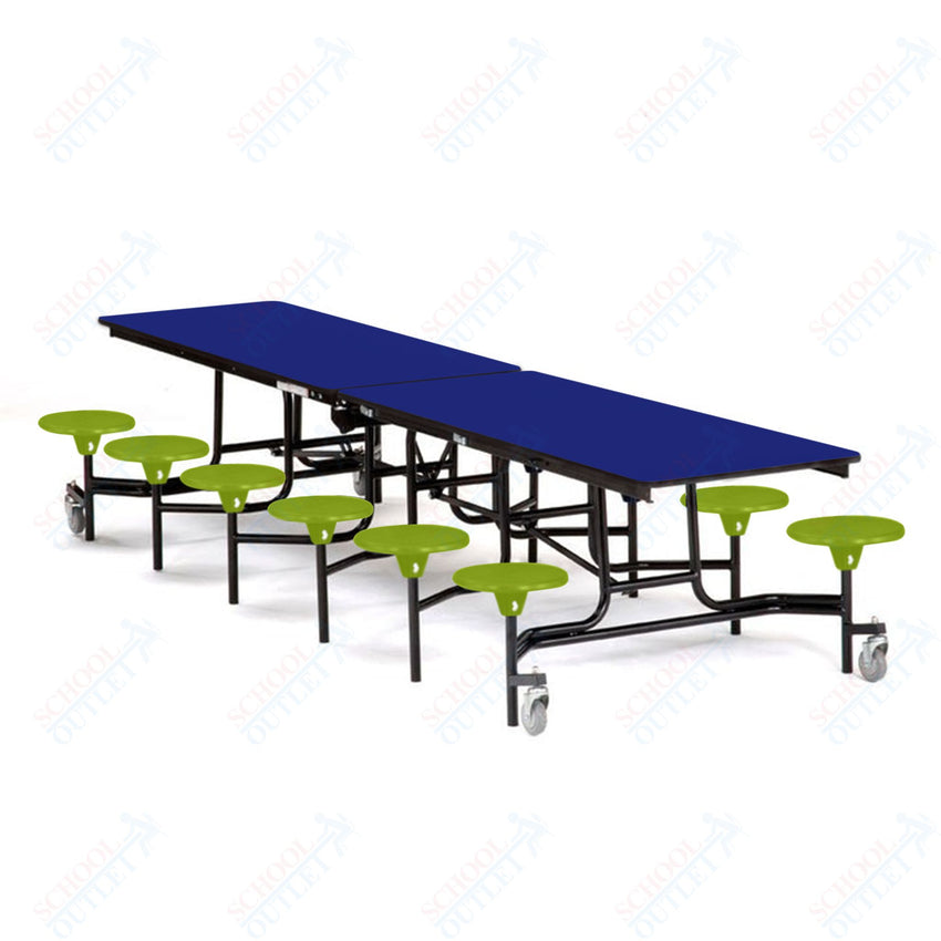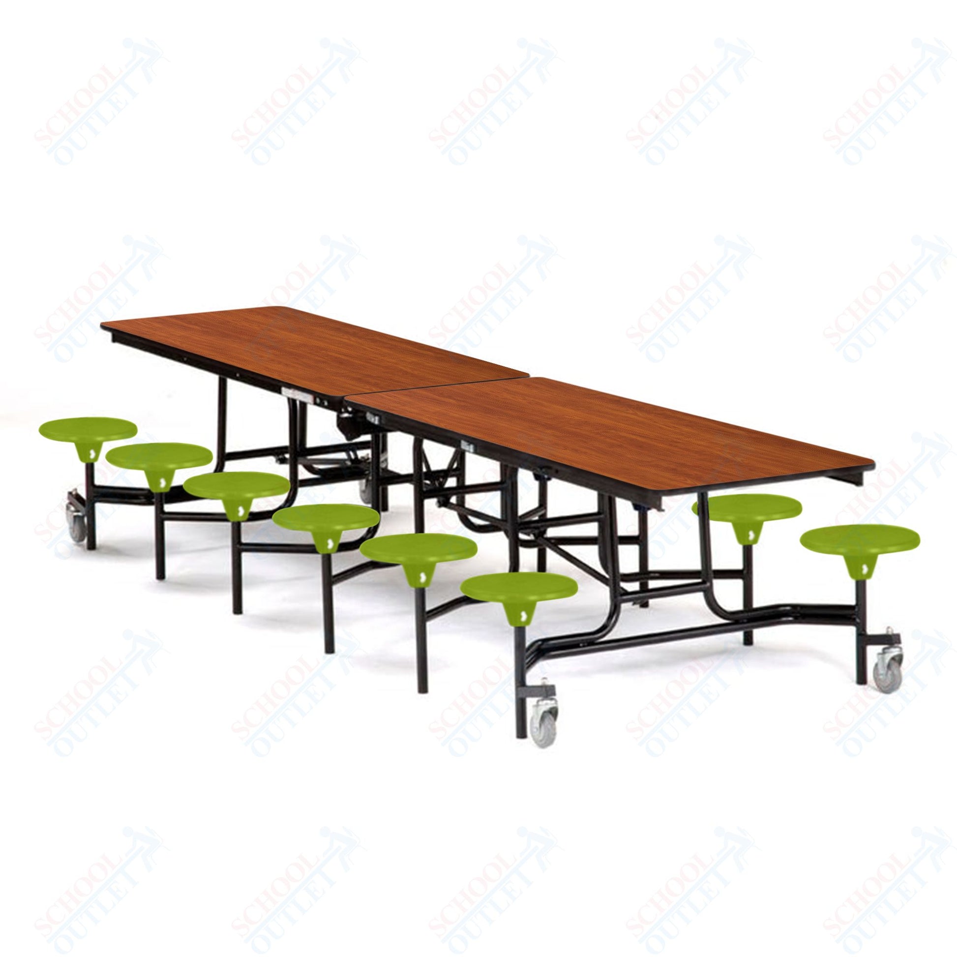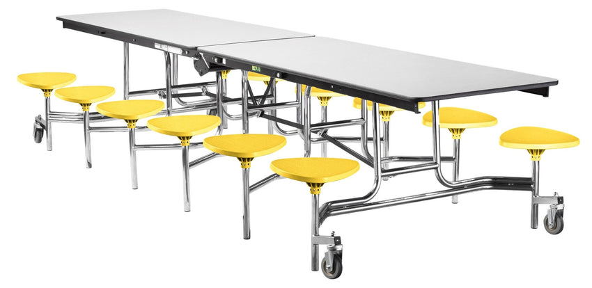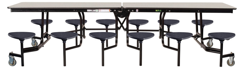 Mobile Cafeteria Lunchroom Stool Table - 30" W x 12' L - 12 Stools - Plywood Core - Protect Edge - Black Powdercoated Frame