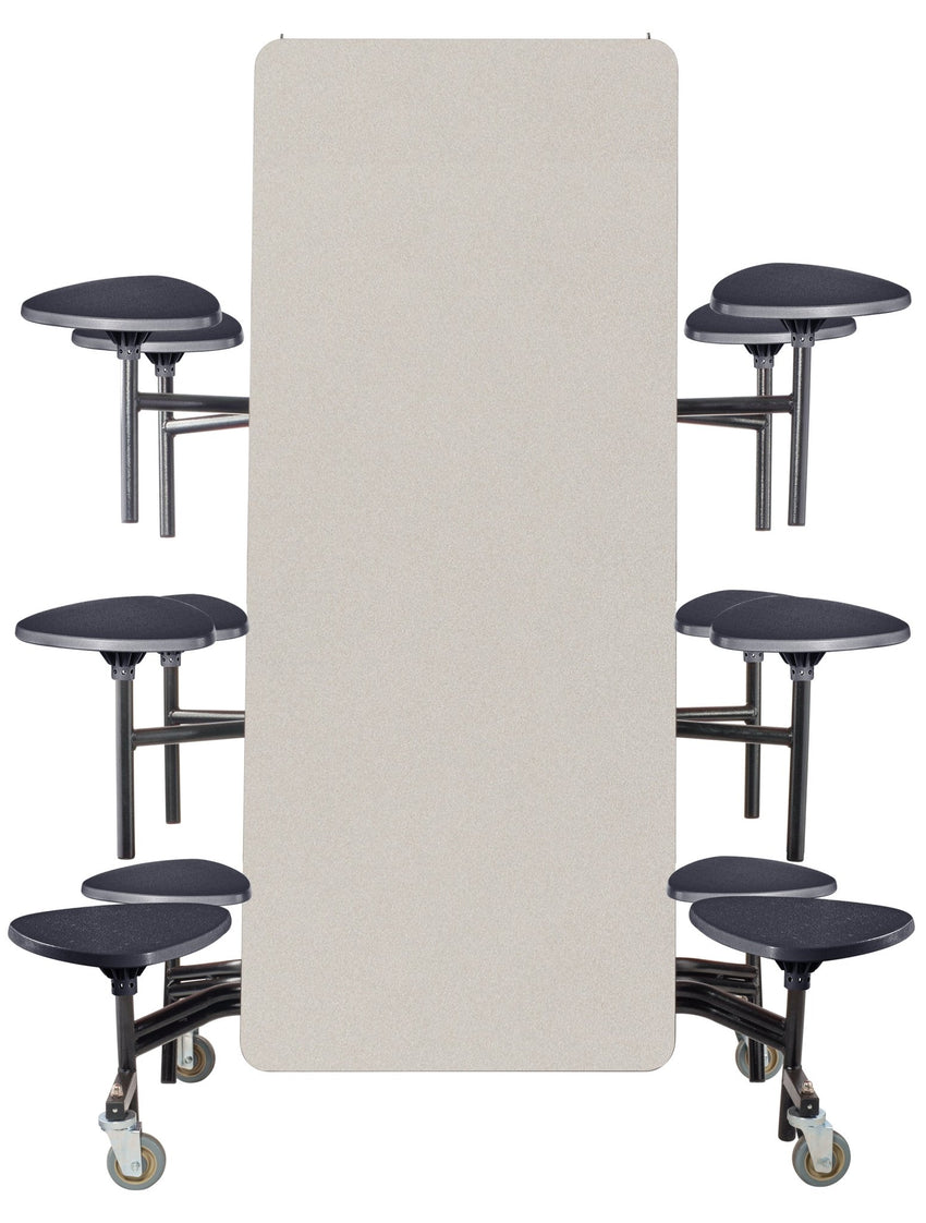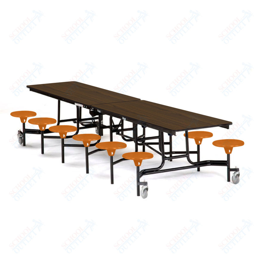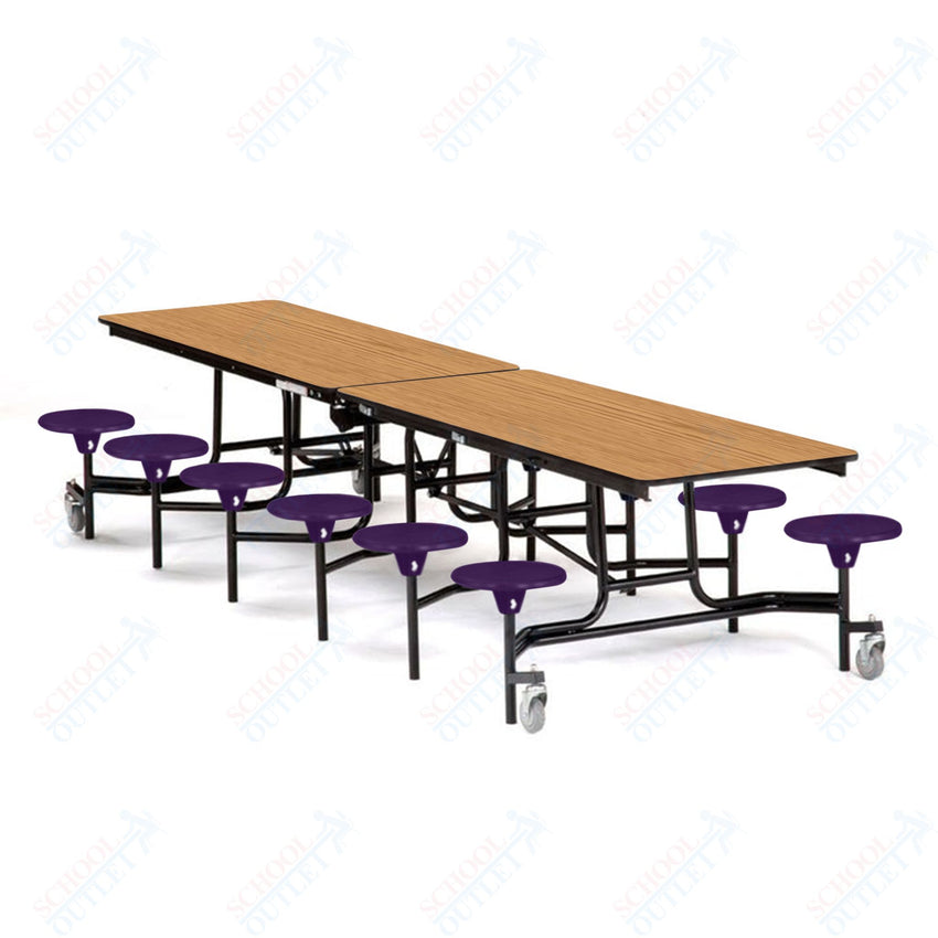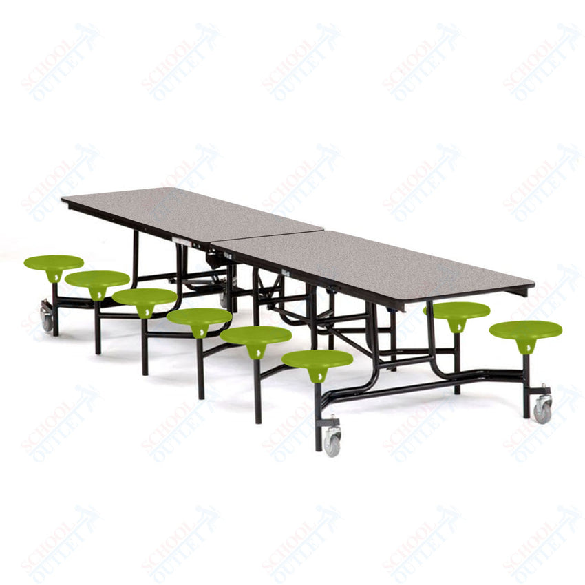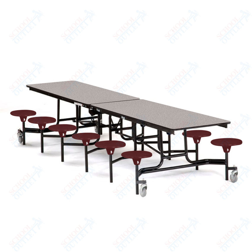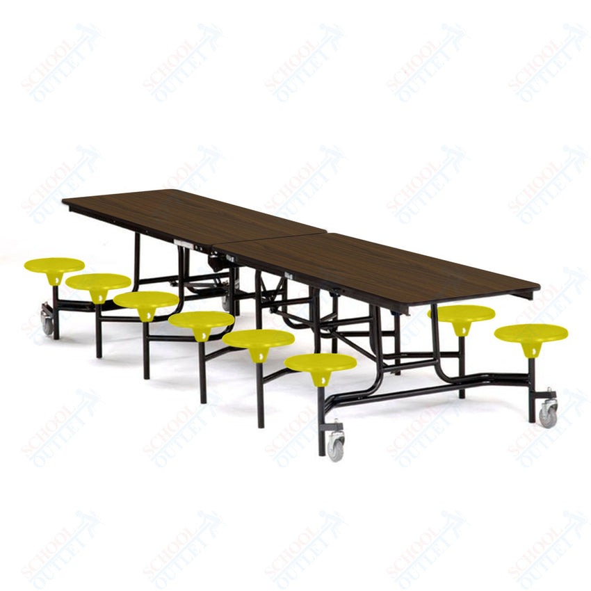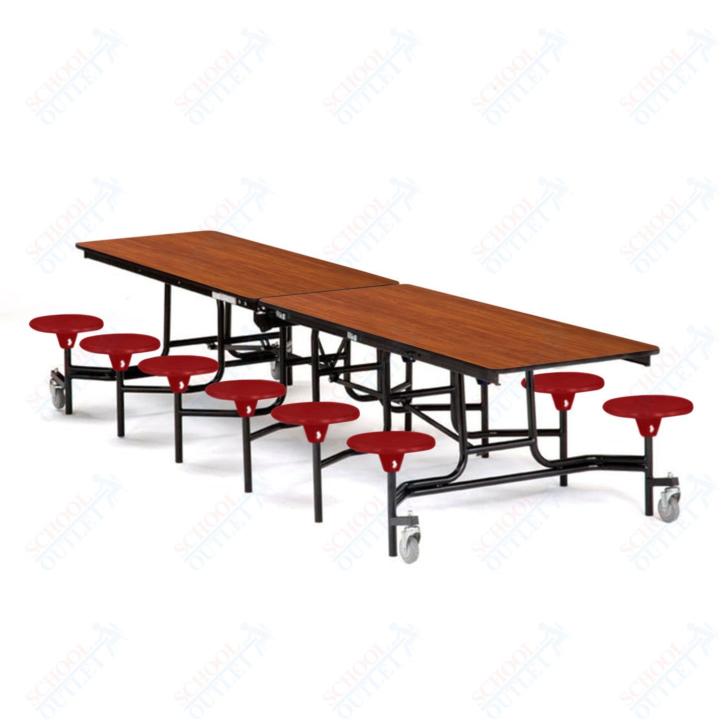 Mobile Cafeteria Lunchroom Stool Table - 30" W x 12' L - 12 Stools - Plywood Core - Protect Edge - Black Powdercoated Frame