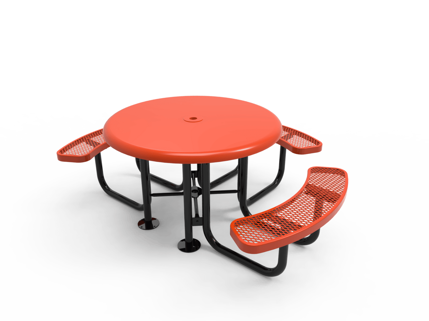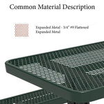 - The seat is made of 3/4" #9 Flattened Expanded Metal or 1/2″ Hole 12 gauge Punched Steel. Table Top is made of 11 gauge Spun Metal
