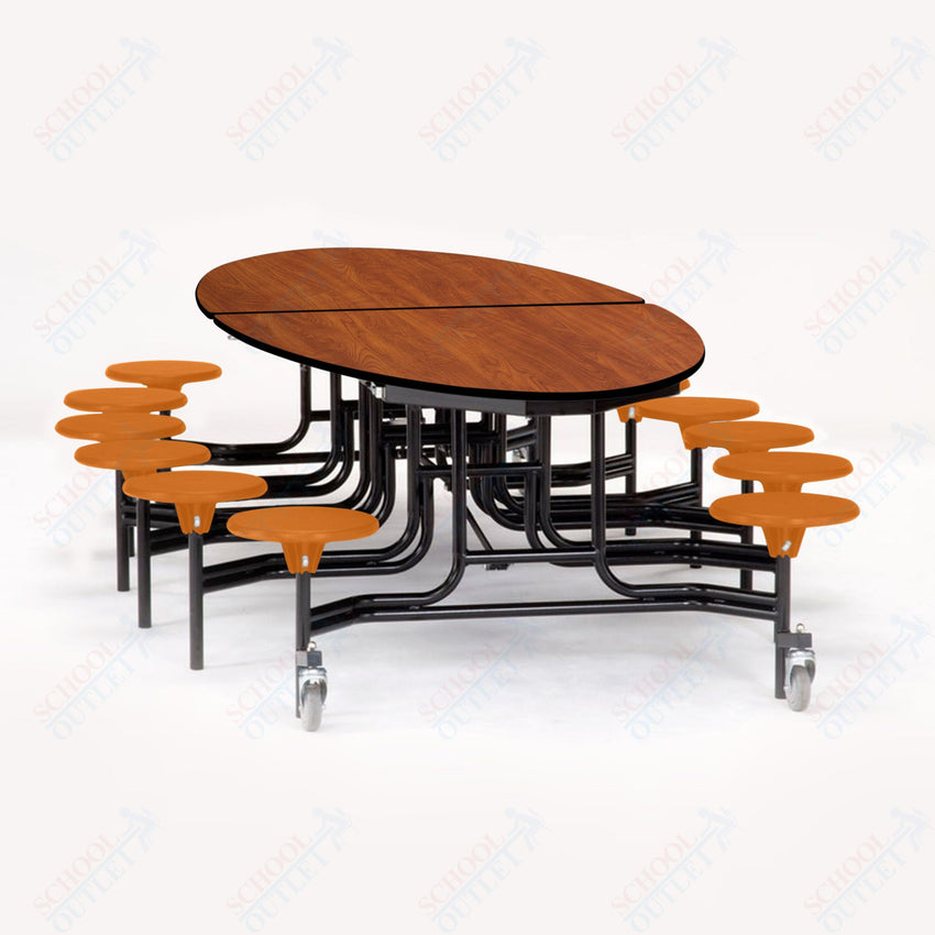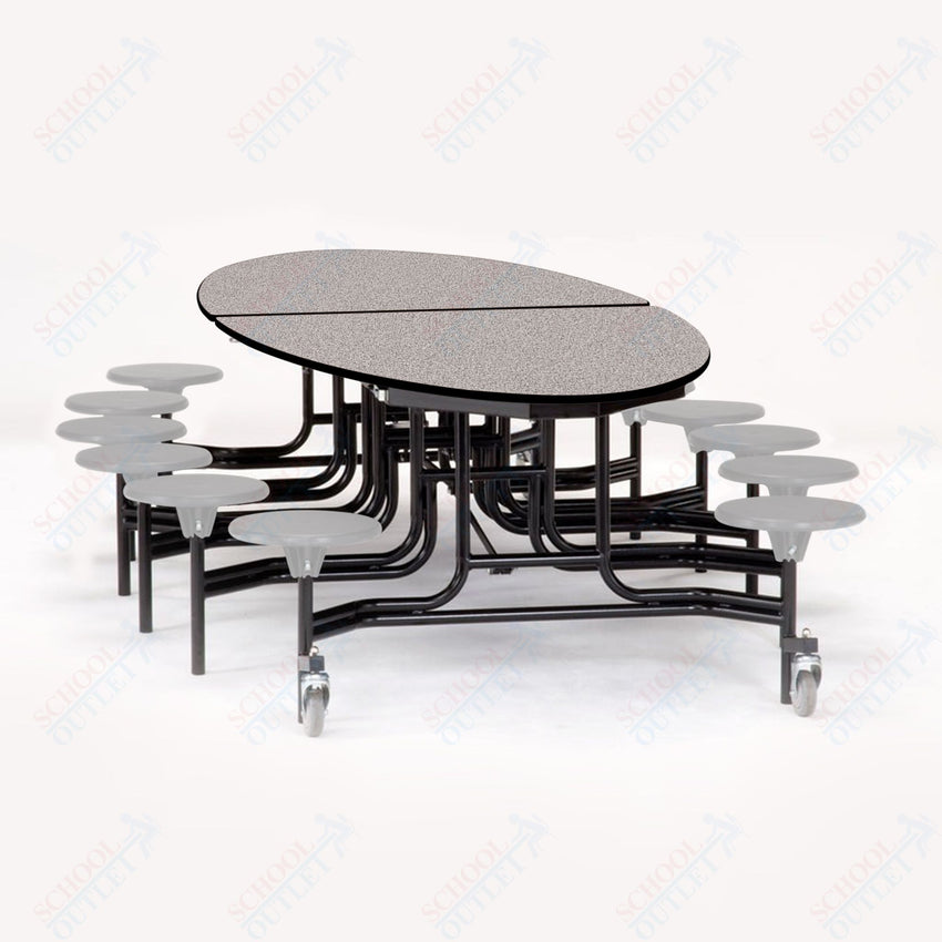 NPS 10' Elliptical Mobile Cafeteria Table - 12 Stools - MDF Core - Protect Edge - Black Powdercoated Frame