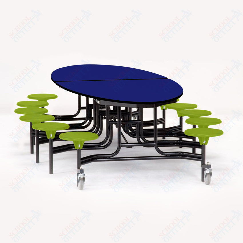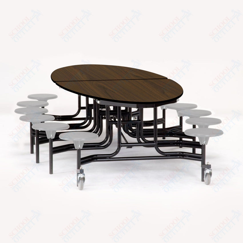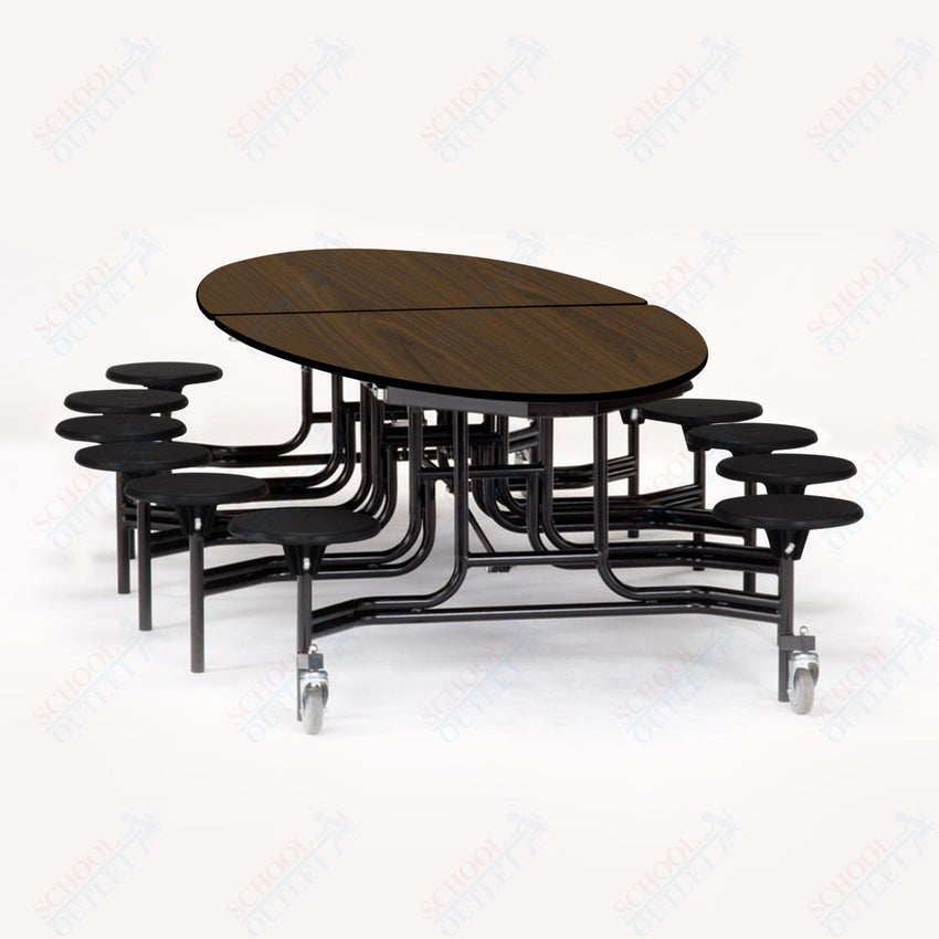 NPS 10' Elliptical Mobile Cafeteria Table - 12 Stools - Plywood Core - Protect Edge - Black Powdercoated Frame