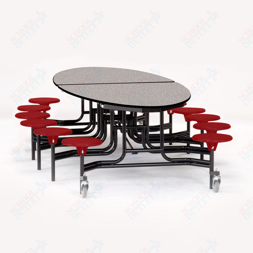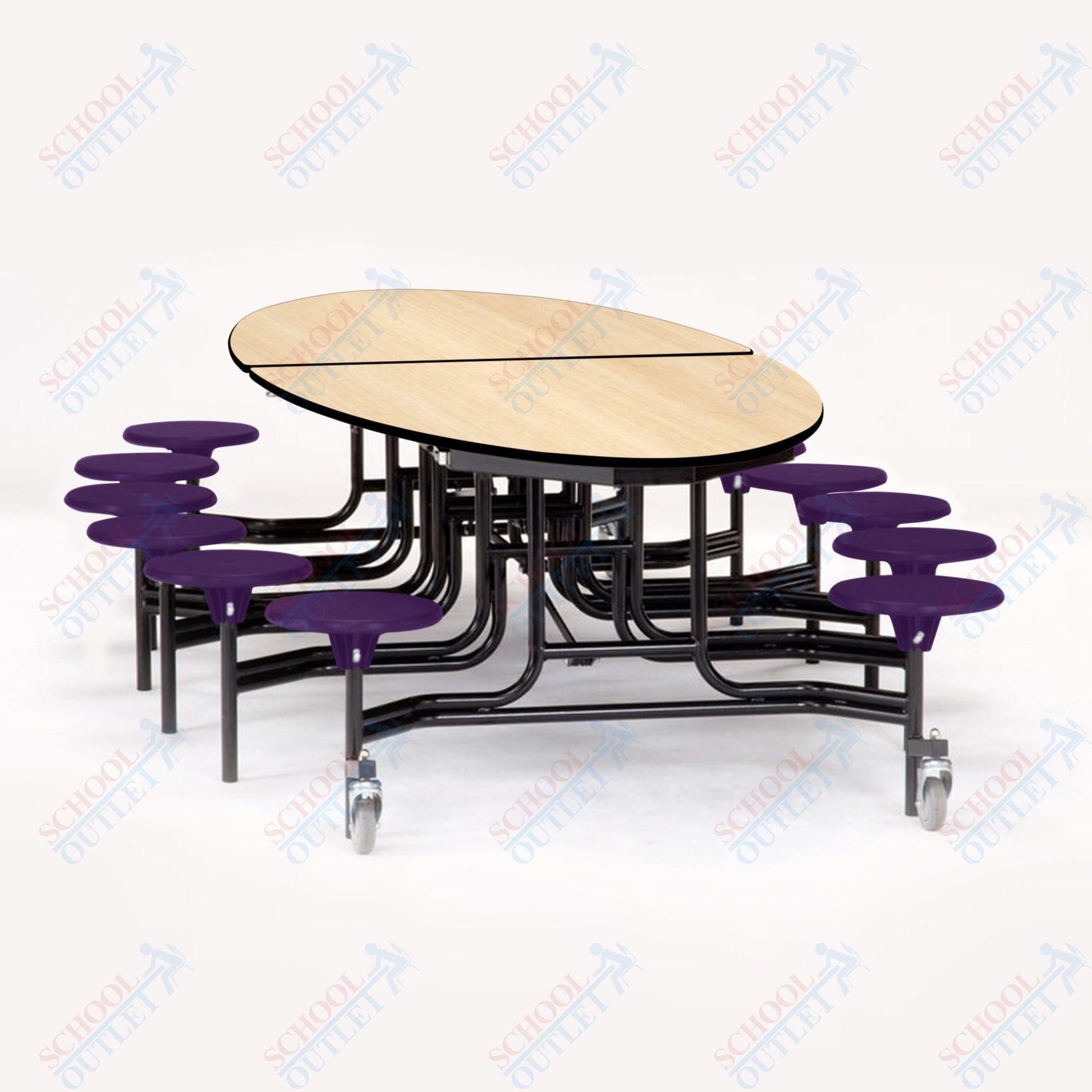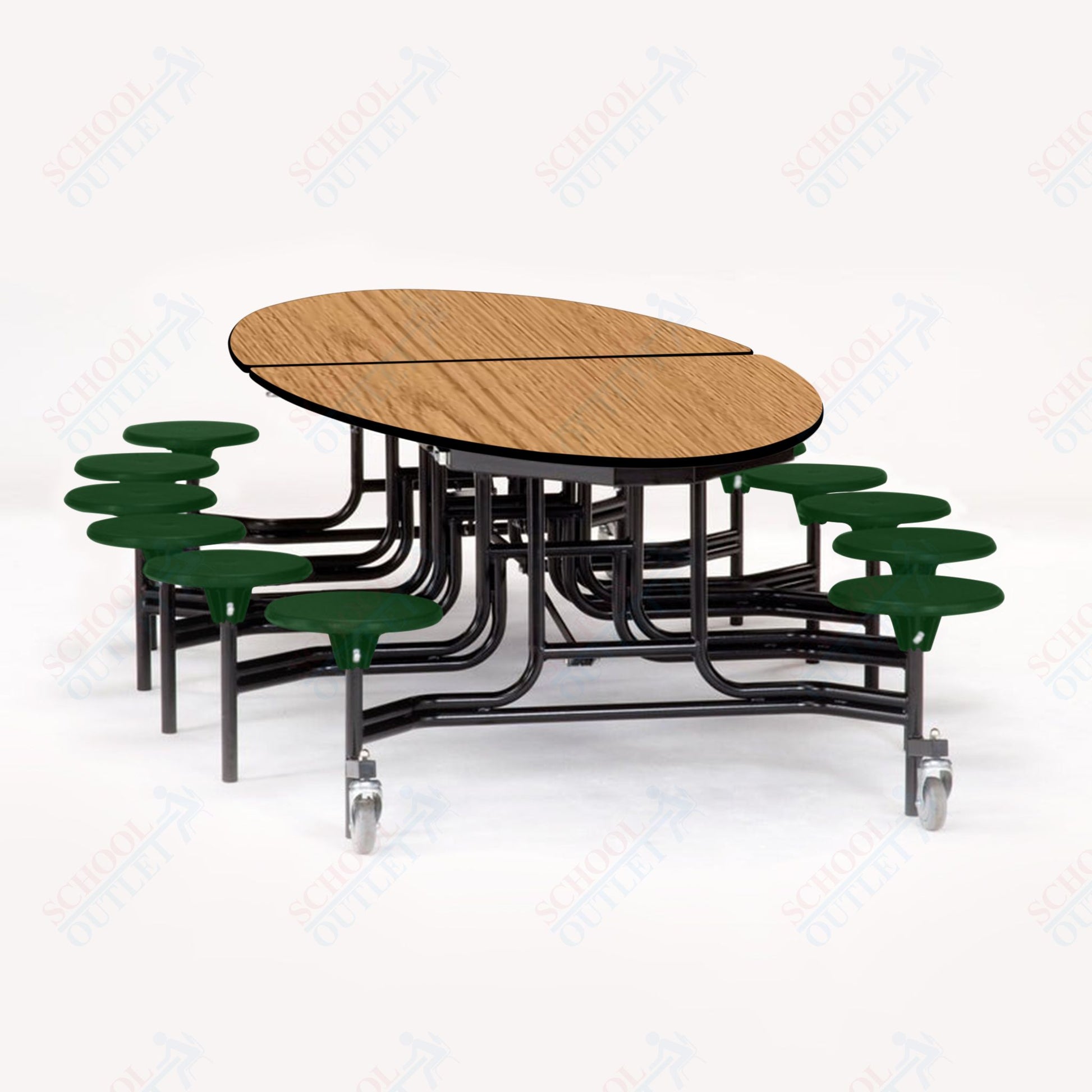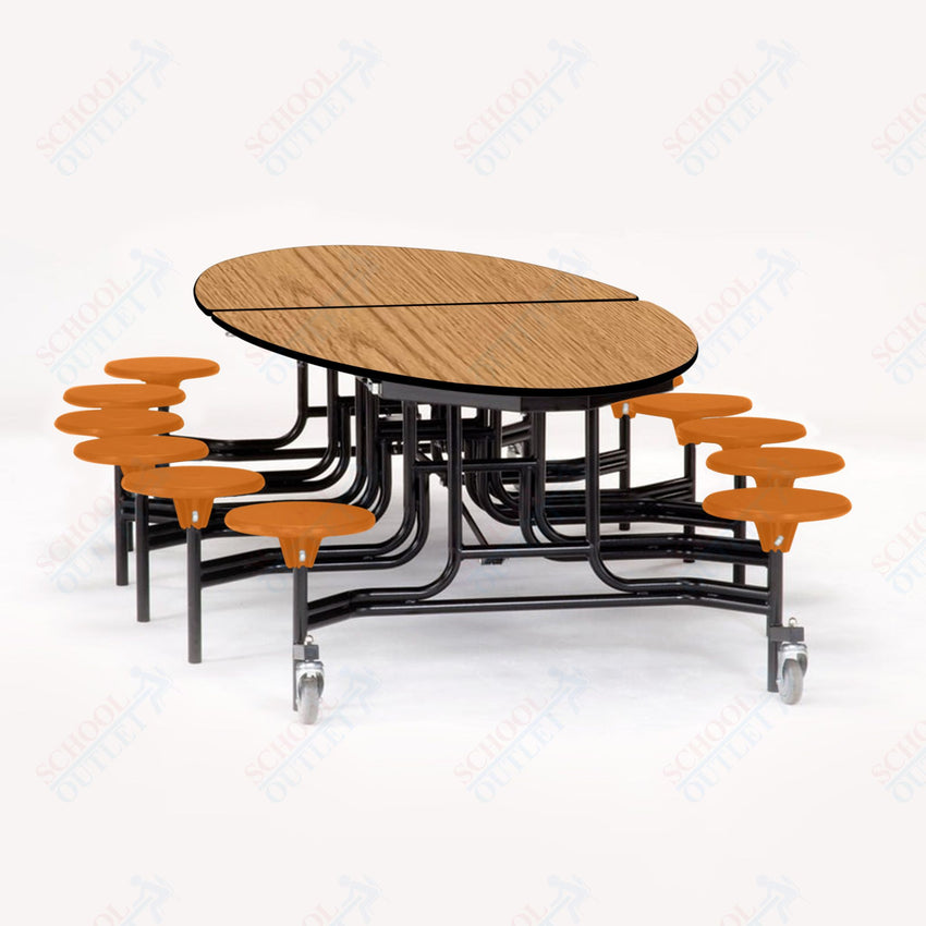 NPS 10' Elliptical Mobile Cafeteria Table - 12 Stools - Plywood Core - T-Molding Edge - Black Powdercoated Frame