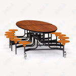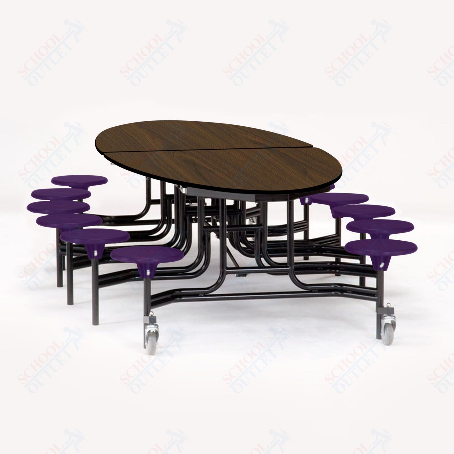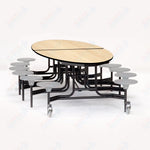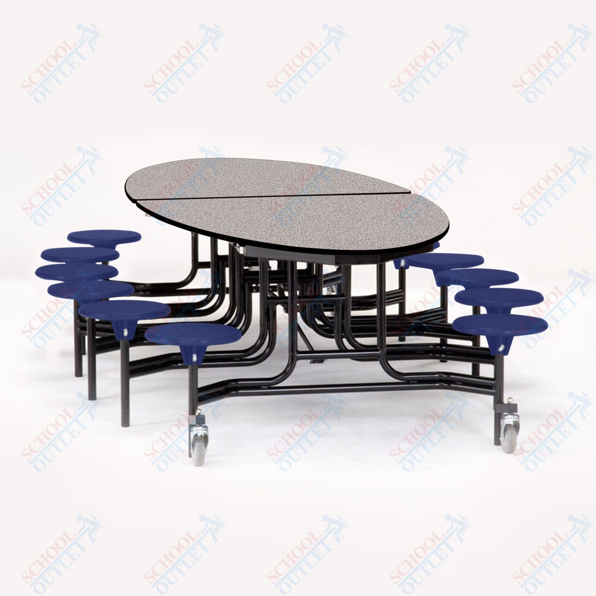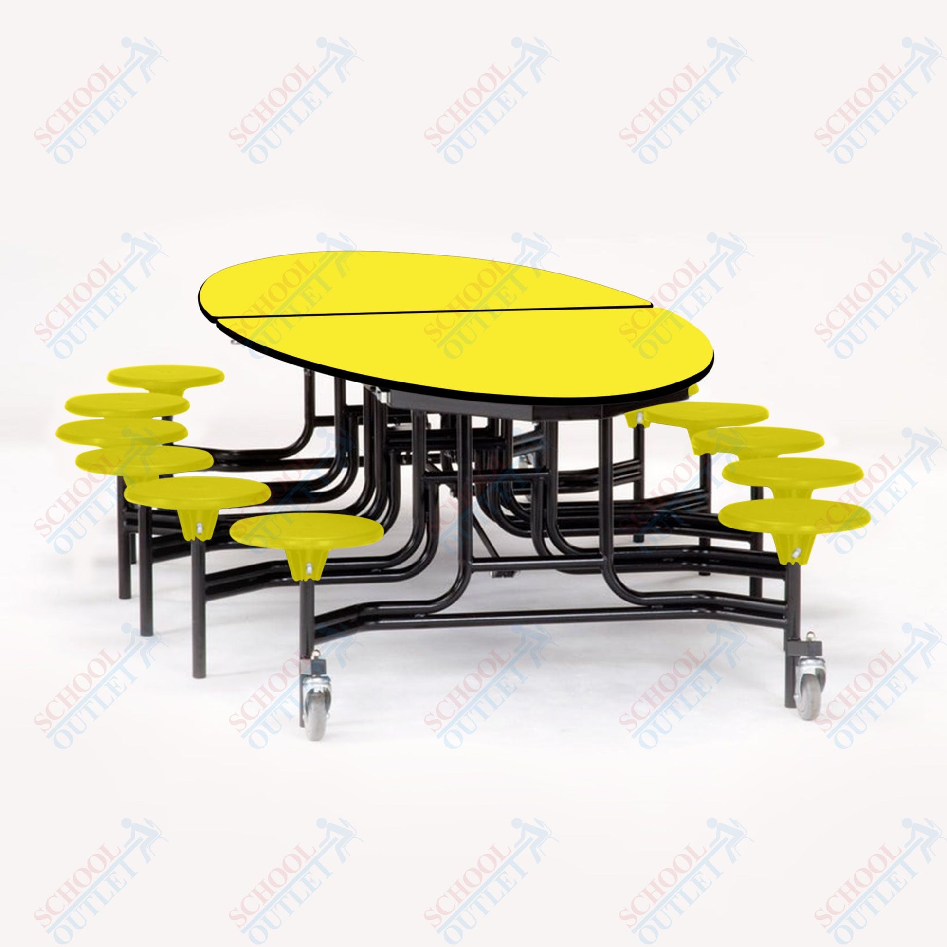 NPS 10' Elliptical Mobile Cafeteria Table - 12 Stools - Plywood Core - T-Molding Edge - Black Powdercoated Frame