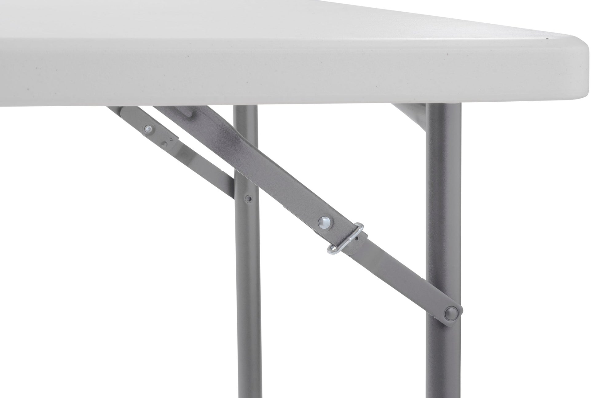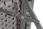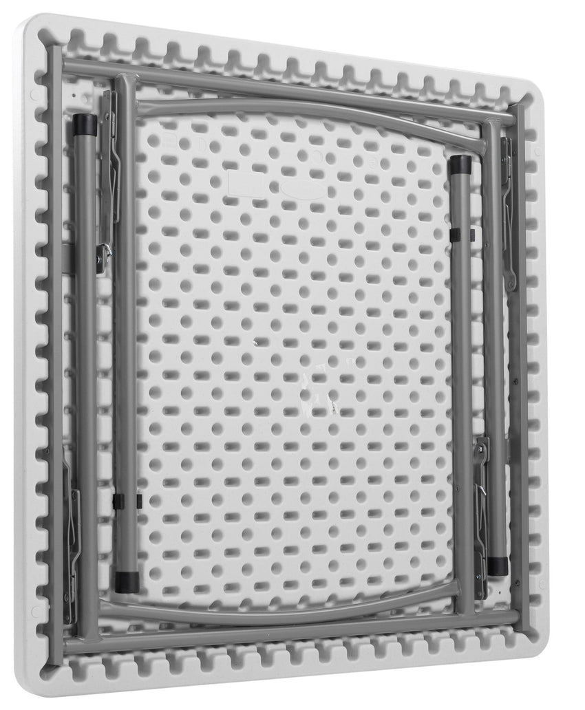 Our BT3636 square blow-molded plastic folding table is the perfect solution for home, office, picnic and cafeteria use. Suitable for indoor or outdoor in any application that calls for affordable, lightweight, weather-resistant and highly durable folding tables. Their lightly textured design keeps them scratch-resistant yet still enables a surface smooth enough for writing. The plastic tabletop is heat-resistant up to 212º F and designed with a non-bowing eggshell structure for fortification to hold up to 500 lbs. of distributed weight! The tabletop color is a light speckled gray matching the textured gray powder-coated steel frame. The legs are straight style and feature gravity slide locks which maintain the table's overall strength and support.