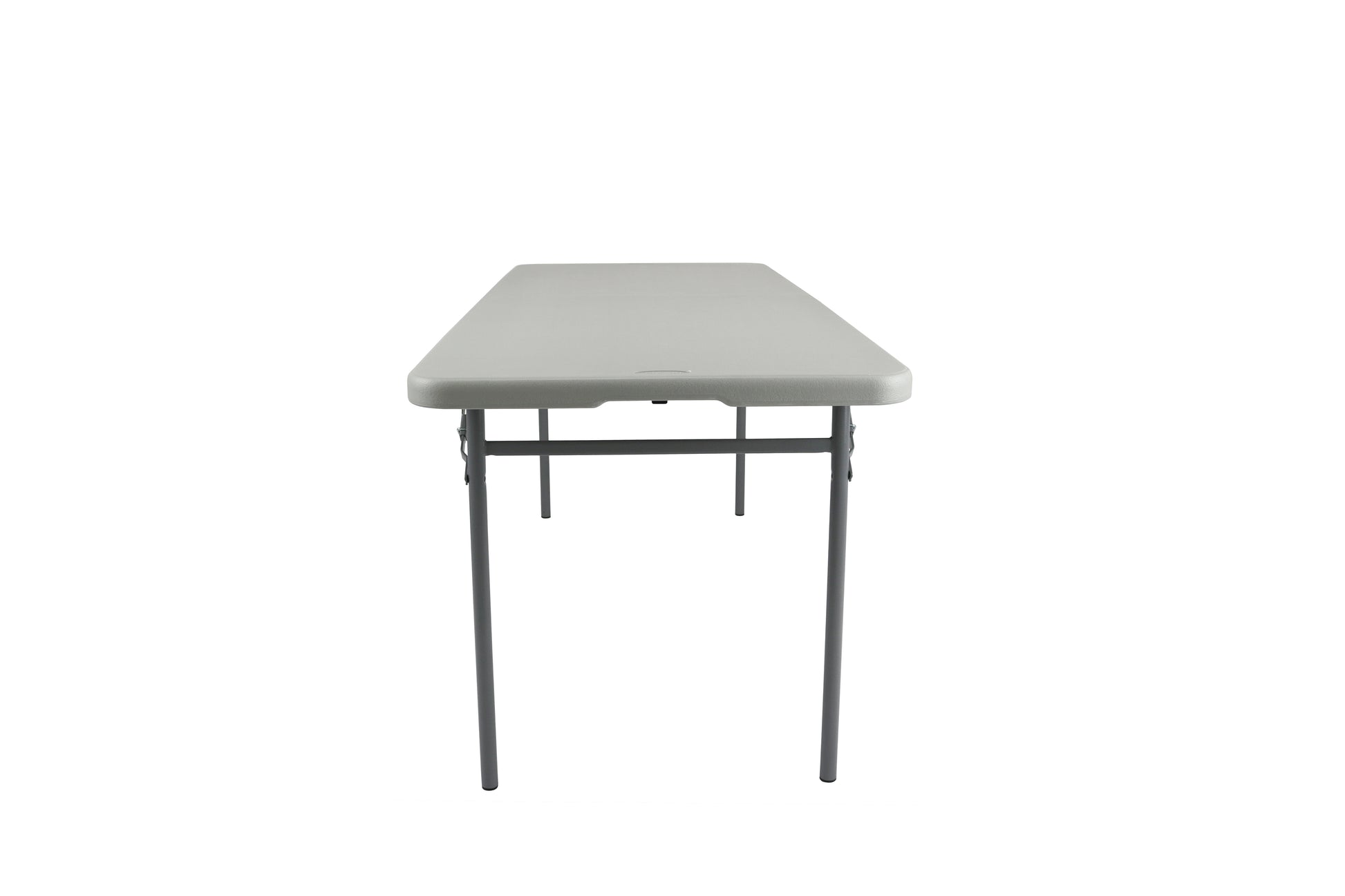 Its speckled grey color complements various professional settings, seamlessly integrating into different environments. Best of all, its design allows for quick and easy setup—no assembly required. Simply unfold the table in seconds for immediate use, making it an ideal solution for both indoor and outdoor activities.