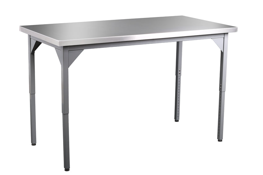 Enhance your workspace with our new stainless steel work surfaces, designed specifically for culinary and collaborative environments. These tabletops are perfect for kitchens, culinary classrooms and any space where durability, hygiene and style are key. Stainless steel is resistant to rust, corrosion, and staining ensuring the tabletop stays looking great and functional for years. With a smooth, non-porous surface, stainless steel is easy to wipe down, making it perfect for high traffic areas or environments that require regular sanitation. The polished finish and reflective surface of stainless steel add a contemporary high end touch to any space. Select between the two tabletop edge styles; safety return or straight edge.