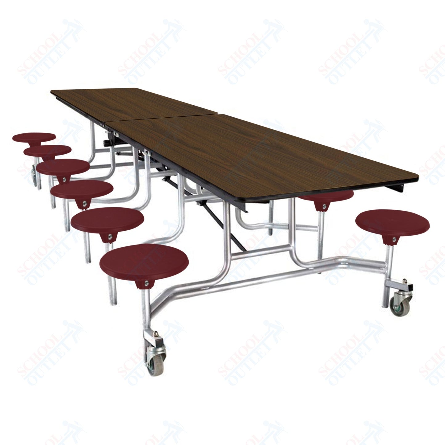 NPS Mobile Cafeteria Table - 30" W x 10' L - 12 Stools - MDF Core - Protect Edge - Chrome Frame
