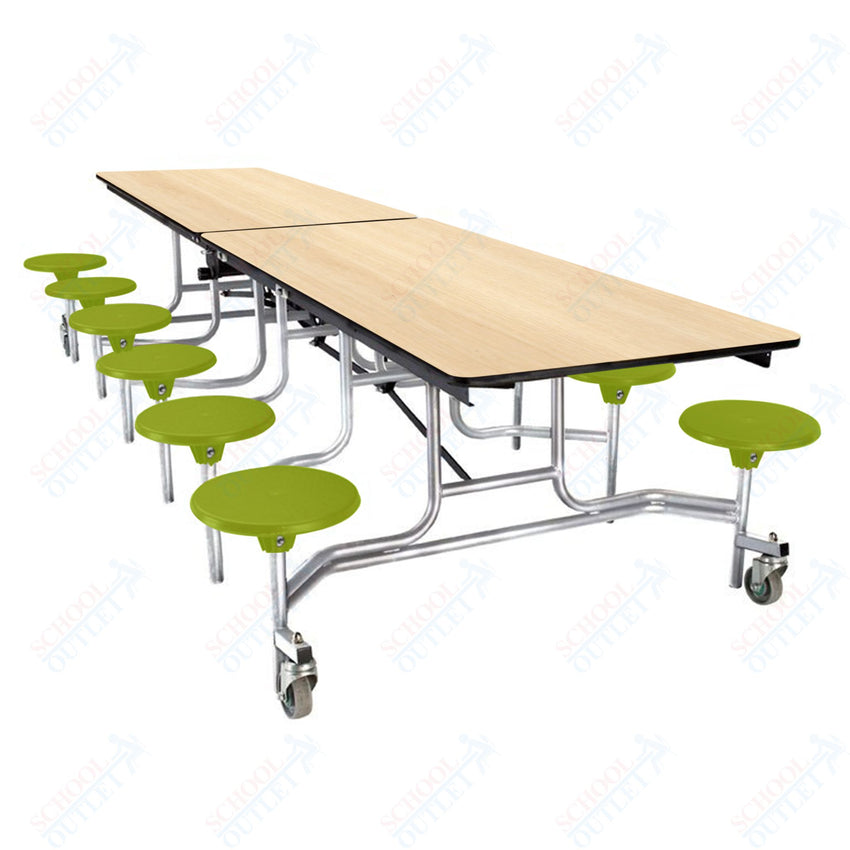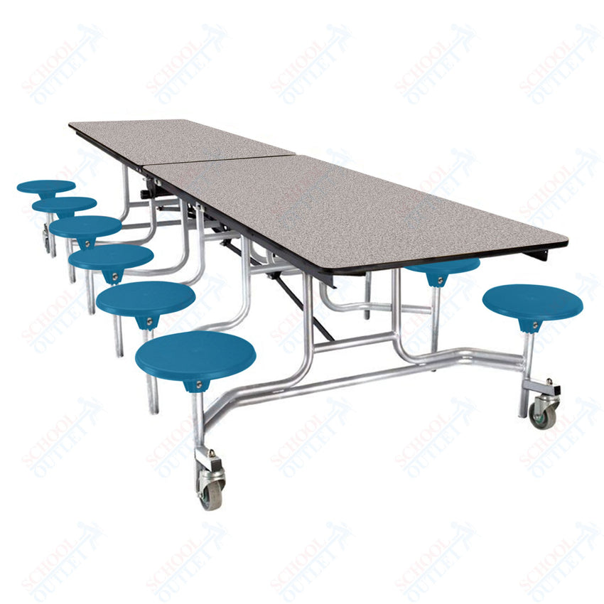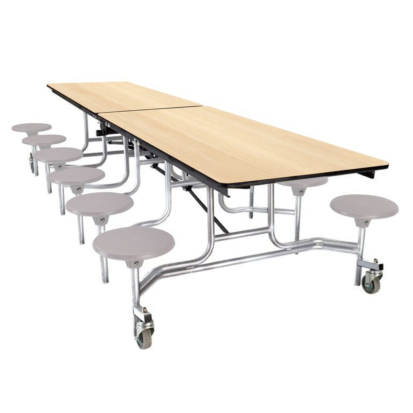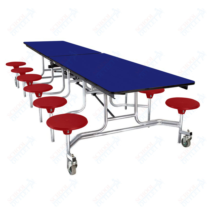 NPS Mobile Cafeteria Table - 30" W x 10' L - 12 Stools - Plywood Core - T-Molding Edge - Chrome Frame