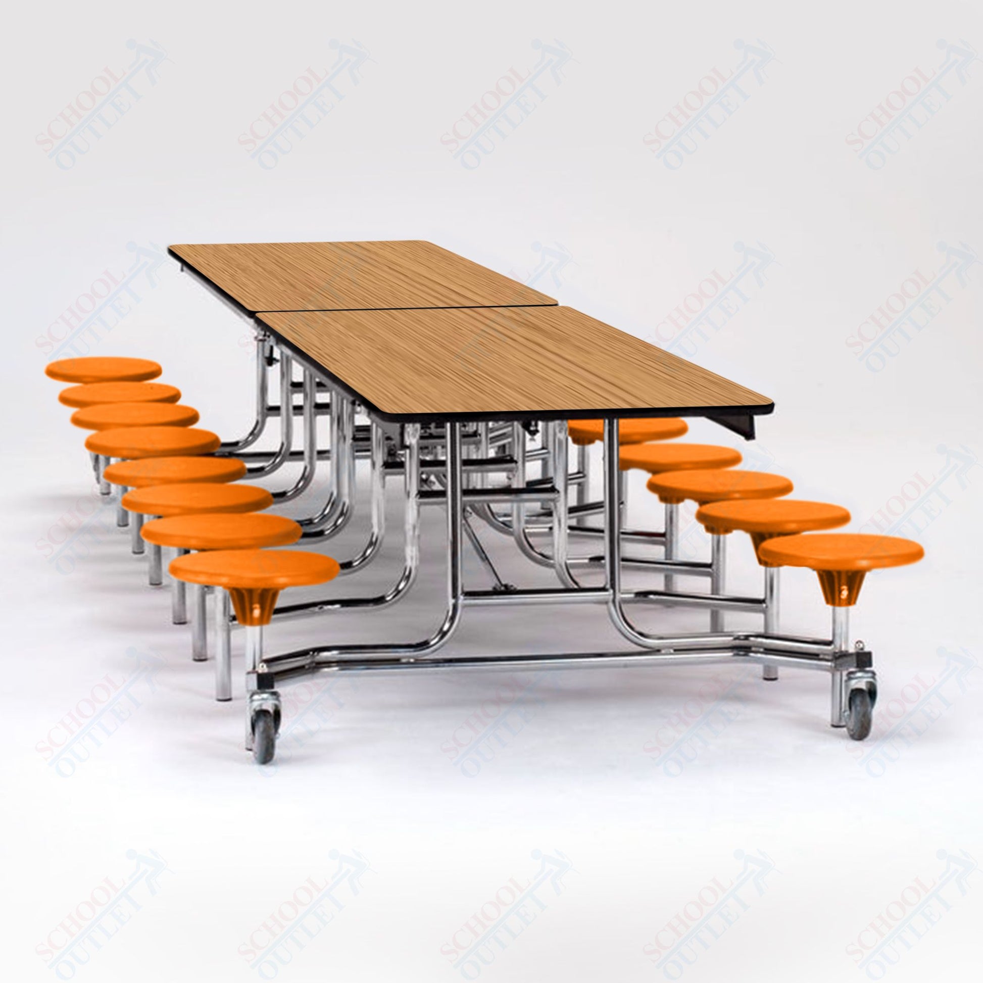 NPS Mobile Cafeteria Table - 30" W x 12' L - 16 Stools - Particleboard Core - T-Molding Edge - Chrome Frame