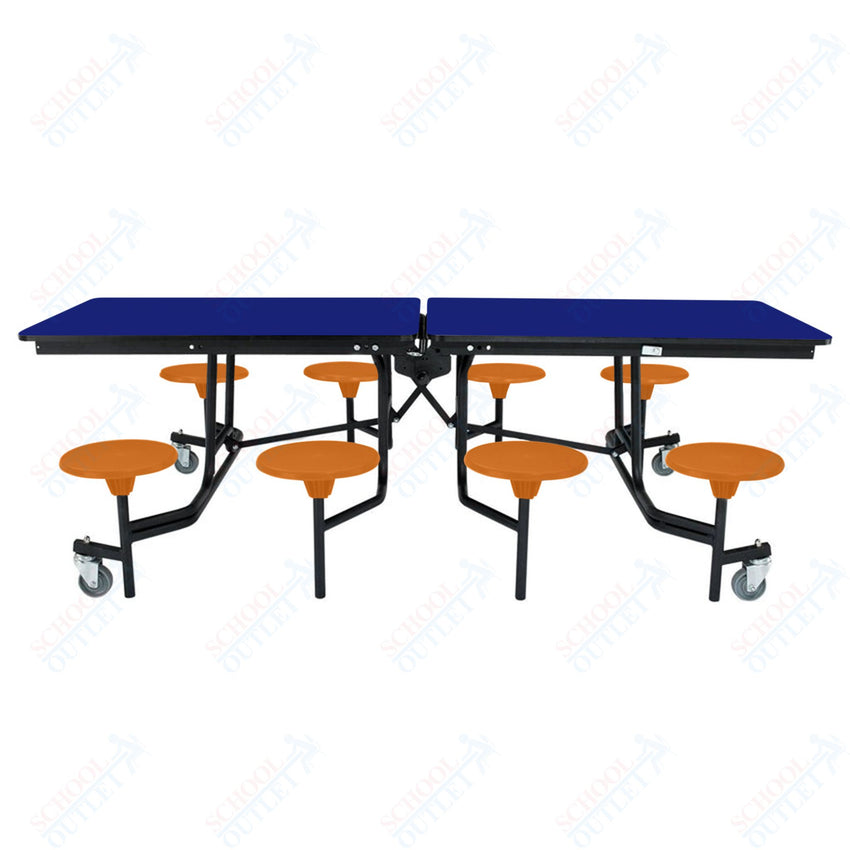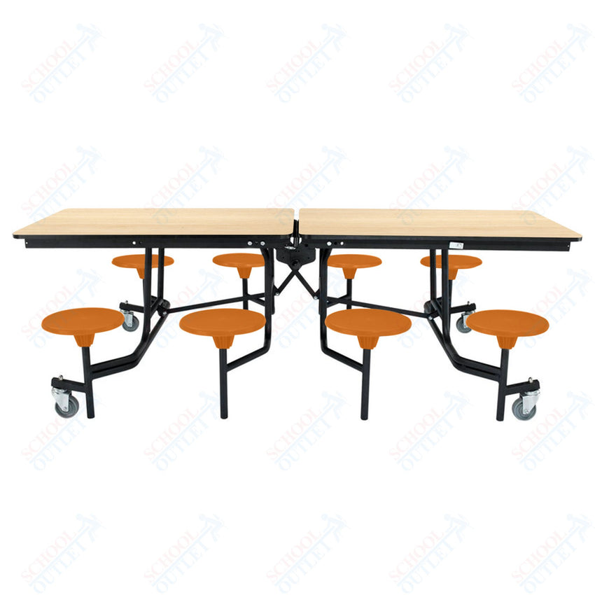 NPS Mobile Cafeteria Table - 30" W x 8' L - 8 Stools - Particleboard Core - T-Molding Edge - Black Powdercoated Frame
