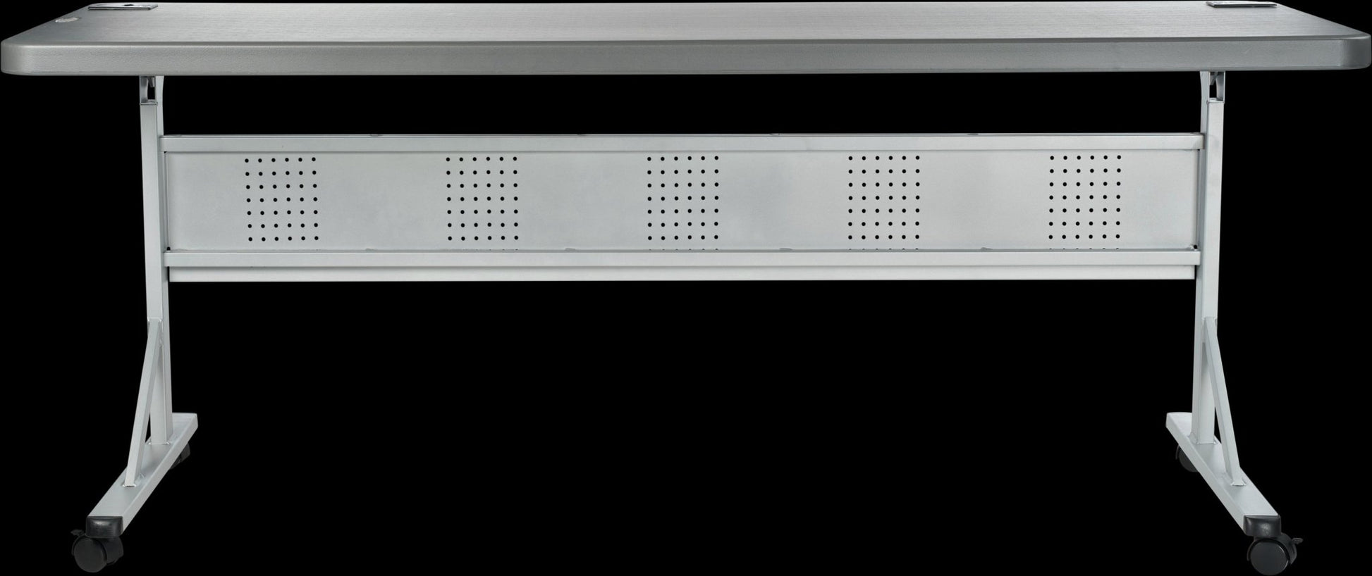 - Frame And Legs Are Made Of Grey Hammer-Tone Powder Coated Steel And Includes A Perforated Steel Modesty Panel For An Attractive Design