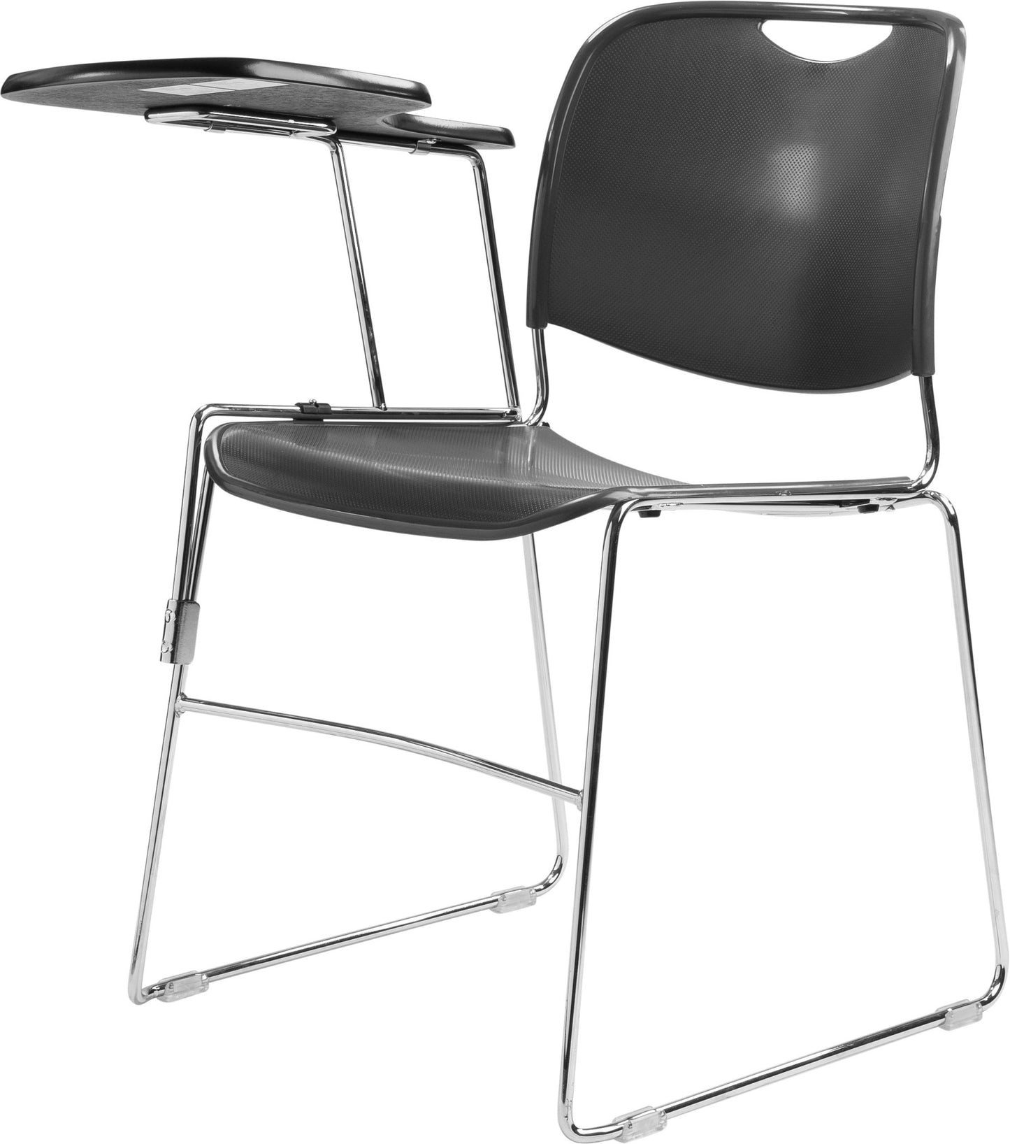 Right hand removable high-pressure laminated tablet arms are available as optional accessories for the 8500 Series Compact Stack chairs from NPS. The tablet flips up for easy entry. Chairs will not stack with tablet arm option attached.