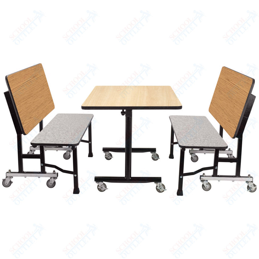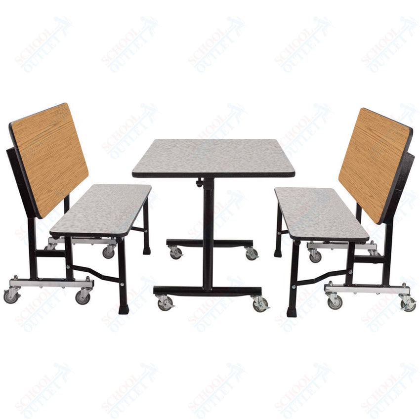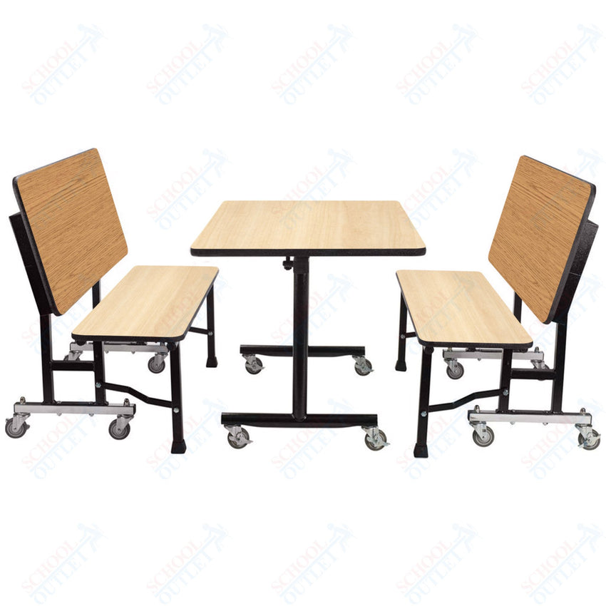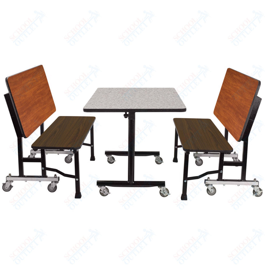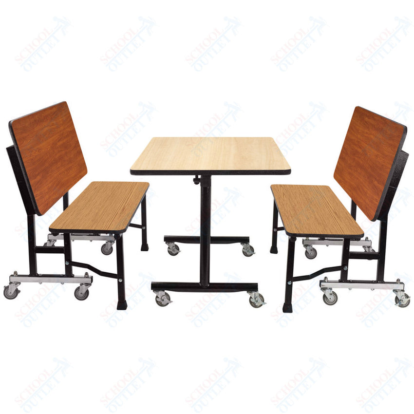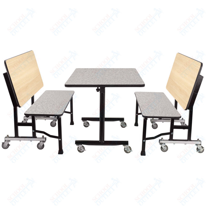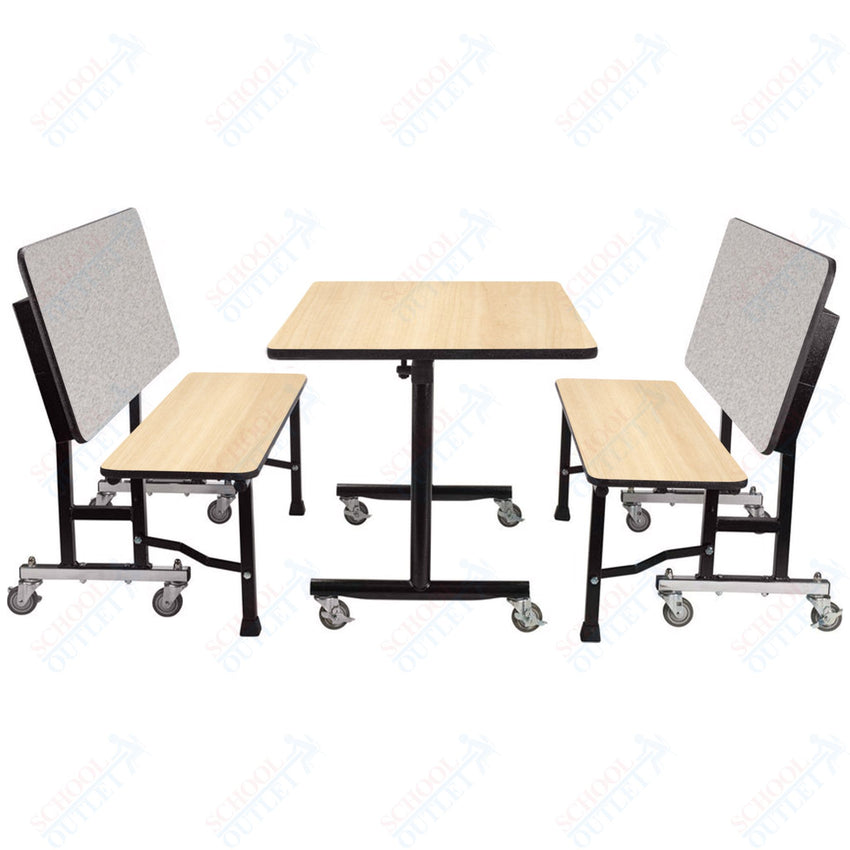Today's cafeterias have become multi-purpose spaces which require furniture that is mobile and multi-functional. NPS's ToGo Booth System is ideal for such an environment. Built with 14 gauge steel, 2" tube legs, and double ball bearing non-marring 3" casters, the ToGo provides the ultimate in strength and mobility. It's simple to reconfigure for multi-purpose use. The ToGo benches feature fixed high backs with a slight 12-degree pitch providing the perfect contour for comfortable seating. Rubber Grip-Tight glides automatically engage with the floor when opened along with locking casters to keep your seating arrangement nicely in place. ToGo Tables come in a choice of MDF or particleboard core with various laminate color options. Tables open and lock automatically and are easily released with a pull of a handle. The ToGo Bench and Table top flip up and nest for optimal storage. Both are offered in 48" or 60" widths and 24"or 30" depths providing comfortable seating for all sizes.