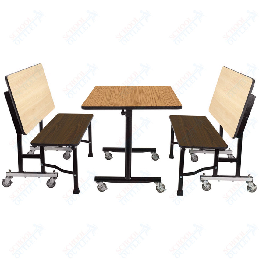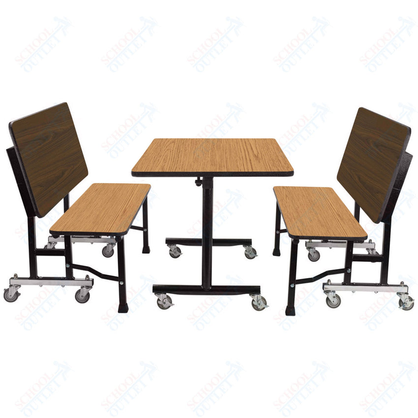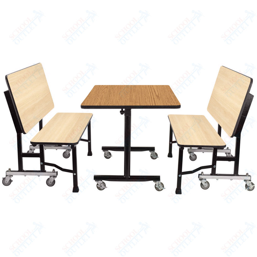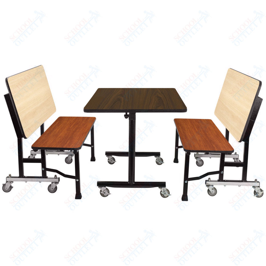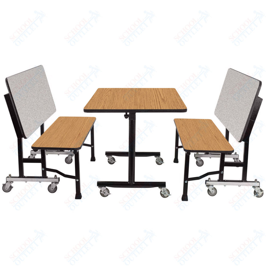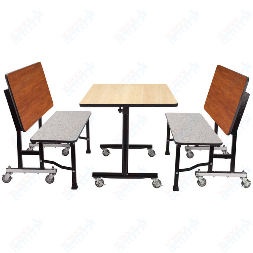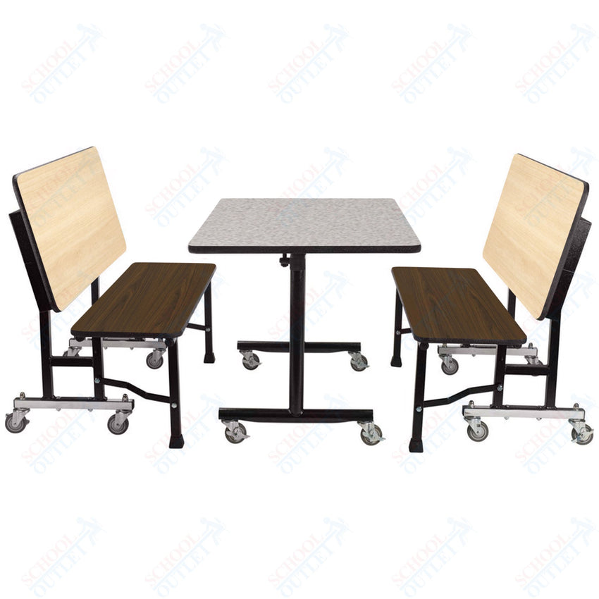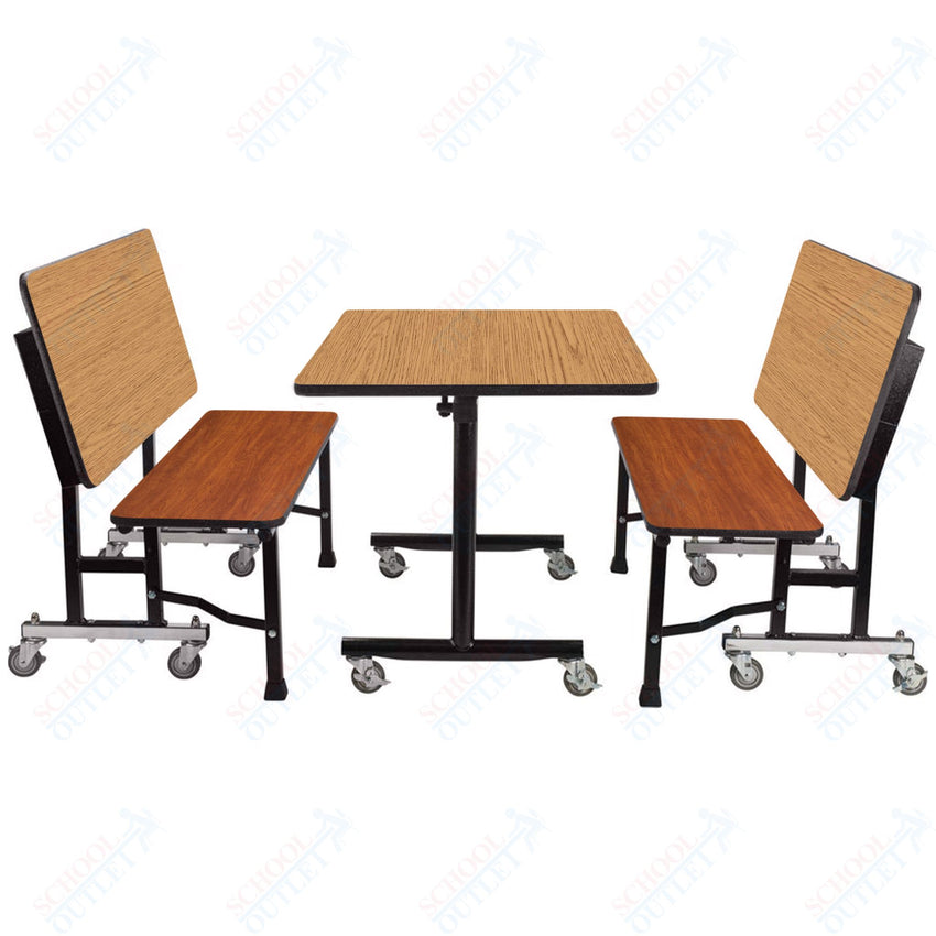 Today's cafeterias have become multi-purpose spaces which require furniture that is mobile and multi-functional. NPS's ToGo Booth System is ideal for such an environment. Built with 14 gauge steel, 2" tube legs, and double ball bearing non-marring 3" casters, the ToGo provides the ultimate in strength and mobility. It's simple to reconfigure for multi-purpose use. The ToGo benches feature fixed high backs with a slight 12-degree pitch providing the perfect contour for comfortable seating. Rubber Grip-Tight glides automatically engage with the floor when opened along with locking casters to keep your seating arrangement nicely in place. ToGo Tables come in a choice of MDF or particleboard core with various laminate color options. Tables open and lock automatically and are easily released with a pull of a handle. The ToGo Bench and Table top flip up and nest for optimal storage. Both are offered in 48" or 60" widths and 24"or 30" depths providing comfortable seating for all sizes.