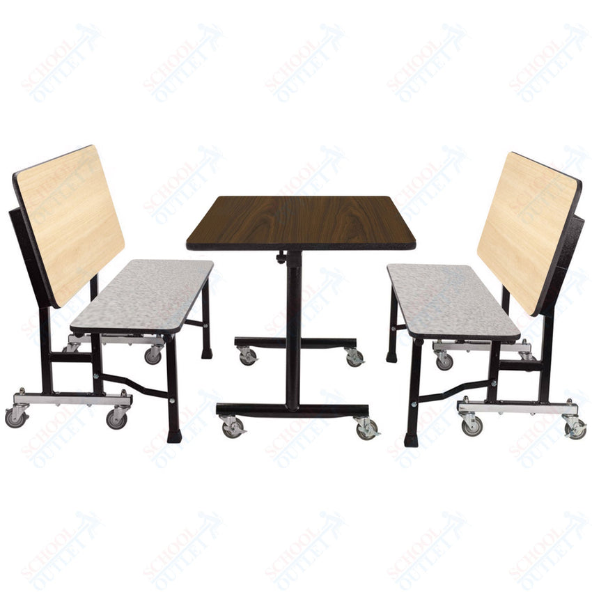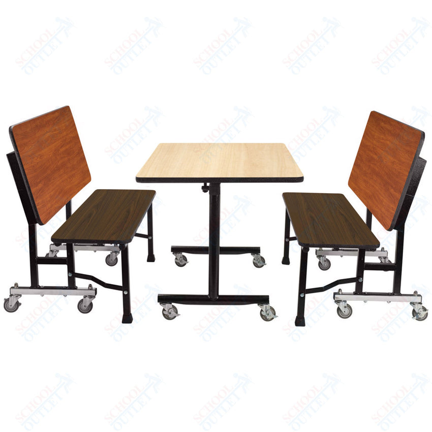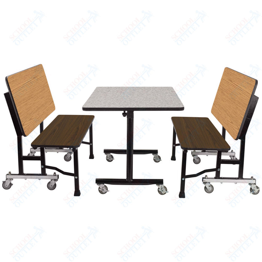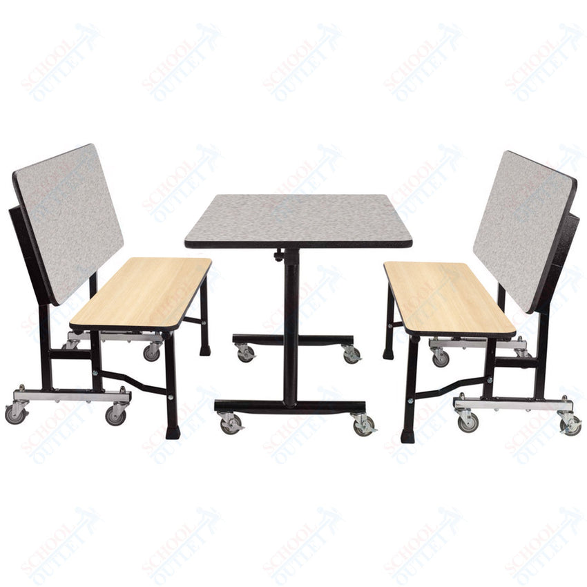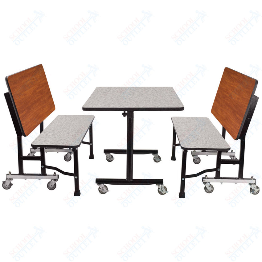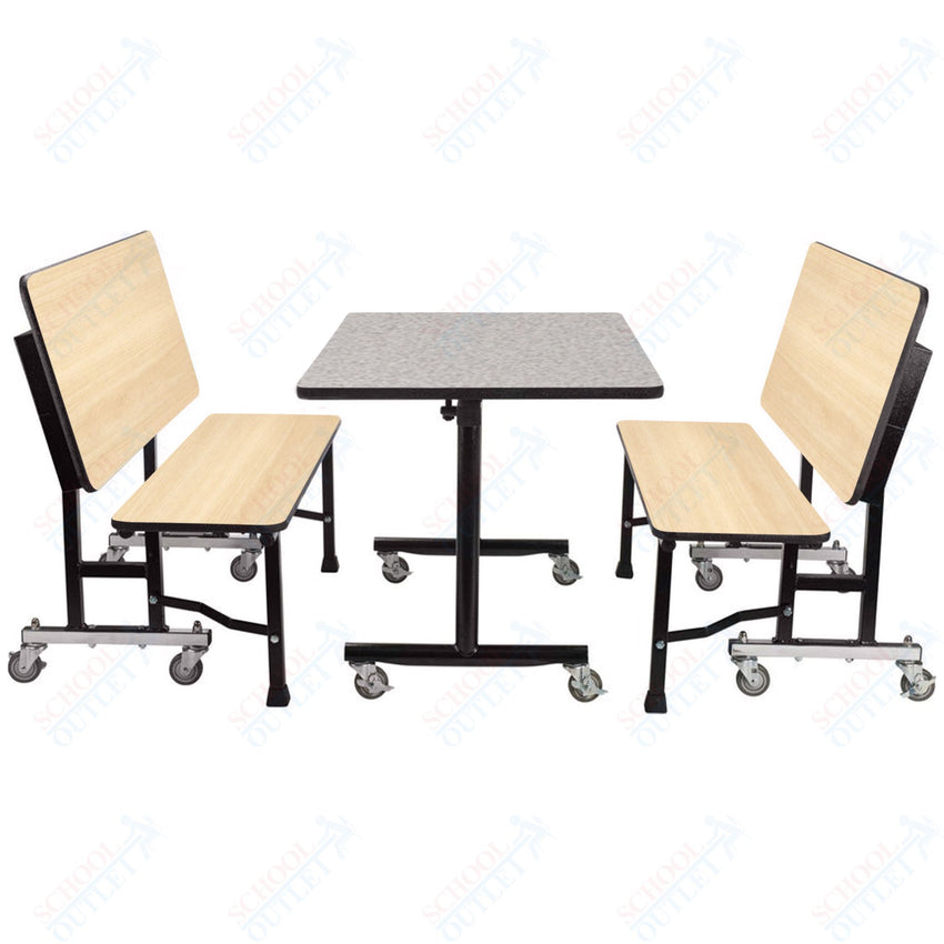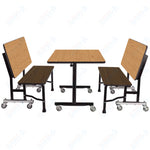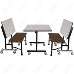 Today's cafeterias have become multi-purpose spaces which require furniture that is mobile and multi-functional. NPS's ToGo Booth System is ideal for such an environment. Built with 14 gauge steel, 2" tube legs, and double ball bearing non-marring 3" casters, the ToGo provides the ultimate in strength and mobility. It's simple to reconfigure for multi-purpose use. The ToGo benches feature fixed high backs with a slight 12-degree pitch providing the perfect contour for comfortable seating. Rubber Grip-Tight glides automatically engage with the floor when opened along with locking casters to keep your seating arrangement nicely in place. ToGo Tables come in a choice of MDF or particleboard core with various laminate color options. Tables open and lock automatically and are easily released with a pull of a handle. The ToGo Bench and Table top flip up and nest for optimal storage. Both are offered in 48" or 60" widths and 24"or 30" depths providing comfortable seating for all sizes.