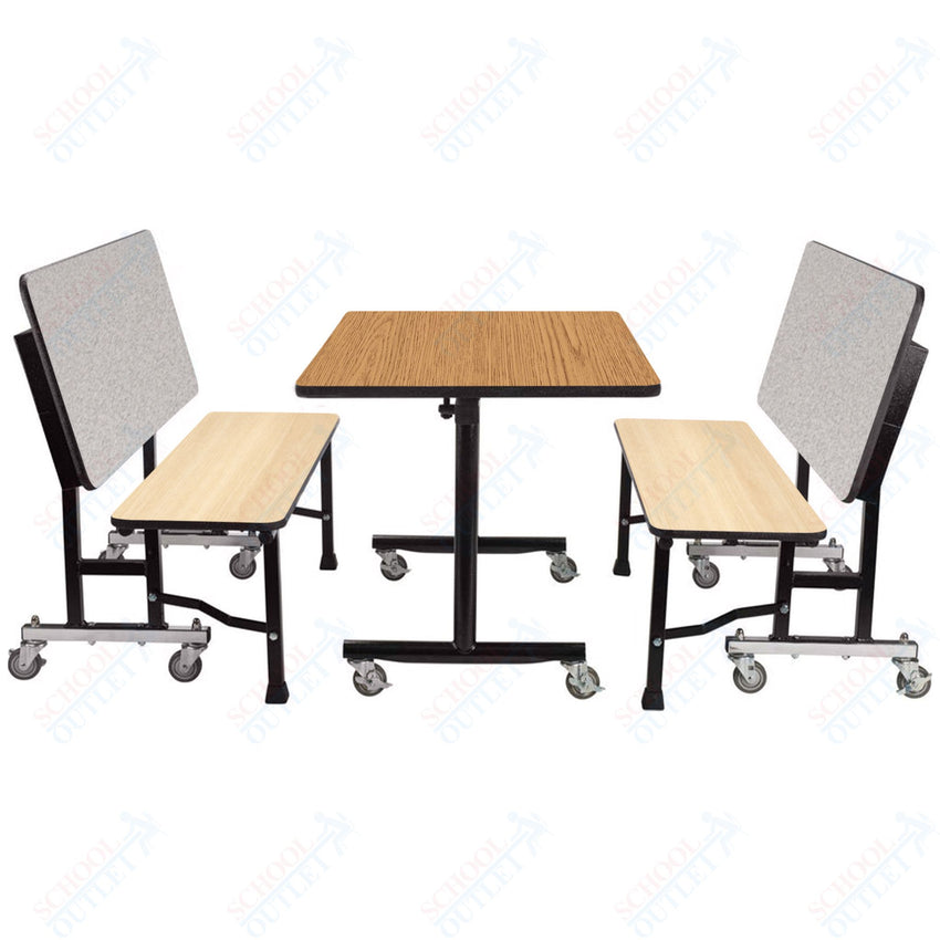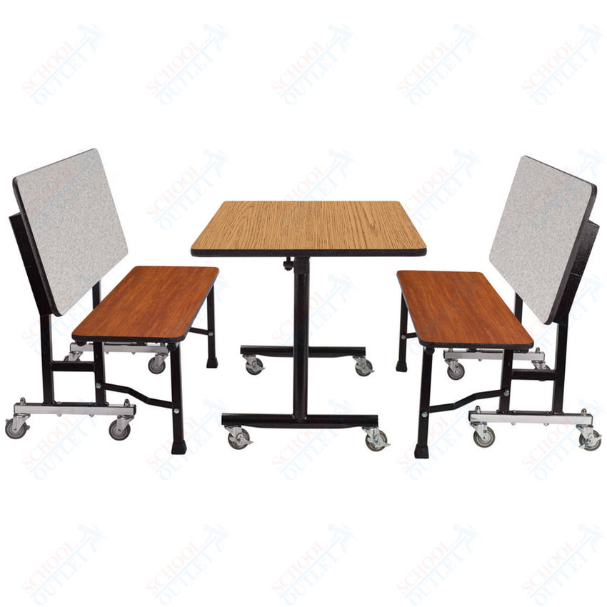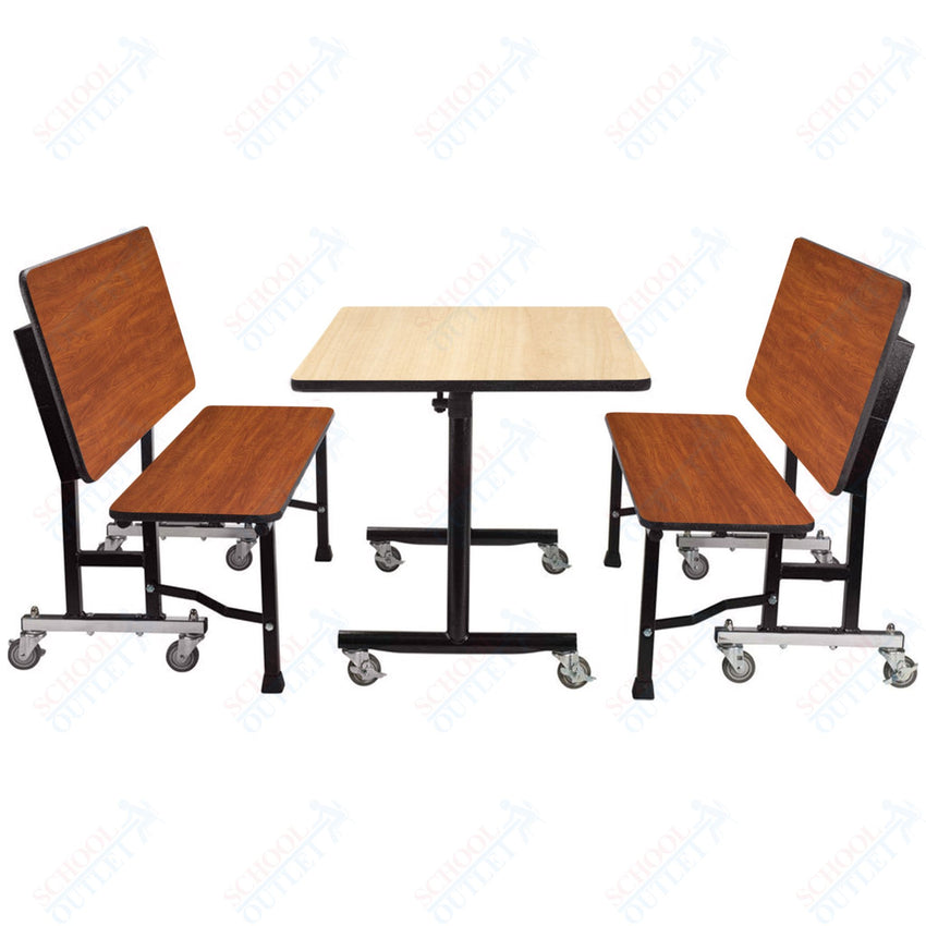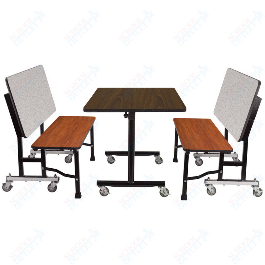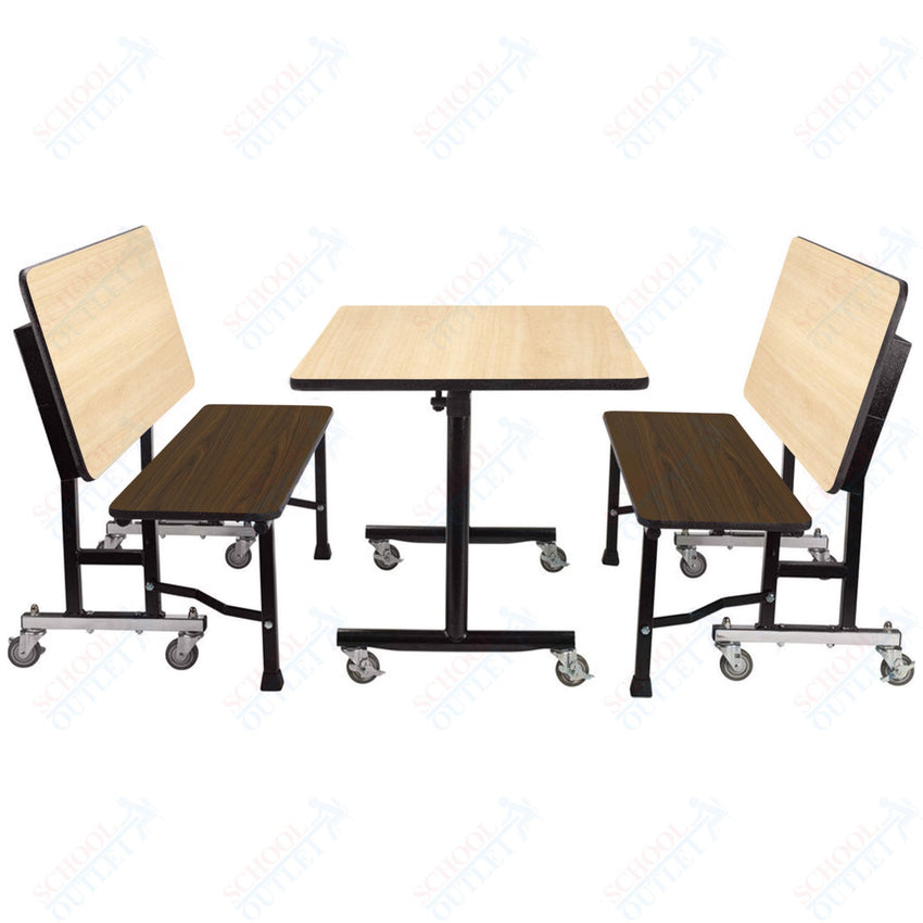 Today's cafeterias have become multi-purpose spaces which require furniture that is mobile and multi-functional. NPS's ToGo Booth System is ideal for such an environment. Built with 14 gauge steel, 2" tube legs, and double ball bearing non-marring 3" casters, the ToGo provides the ultimate in strength and mobility. It's simple to reconfigure for multi-purpose use. The ToGo benches feature fixed high backs with a slight 12-degree pitch providing the perfect contour for comfortable seating. Rubber Grip-Tight glides automatically engage with the floor when opened along with locking casters to keep your seating arrangement nicely in place. ToGo Tables come in a choice of MDF or particleboard core with various laminate color options. Tables open and lock automatically and are easily released with a pull of a handle. The ToGo Bench and Table top flip up and nest for optimal storage. Both are offered in 48" or 60" widths and 24"or 30" depths providing comfortable seating for all sizes.
