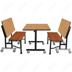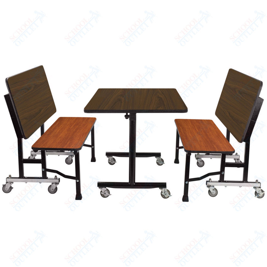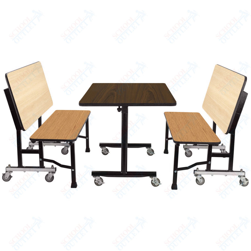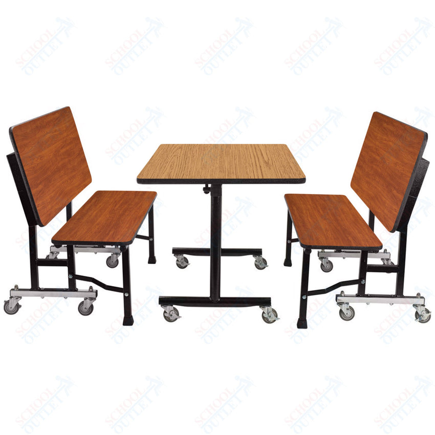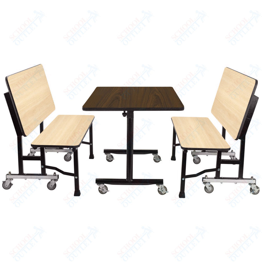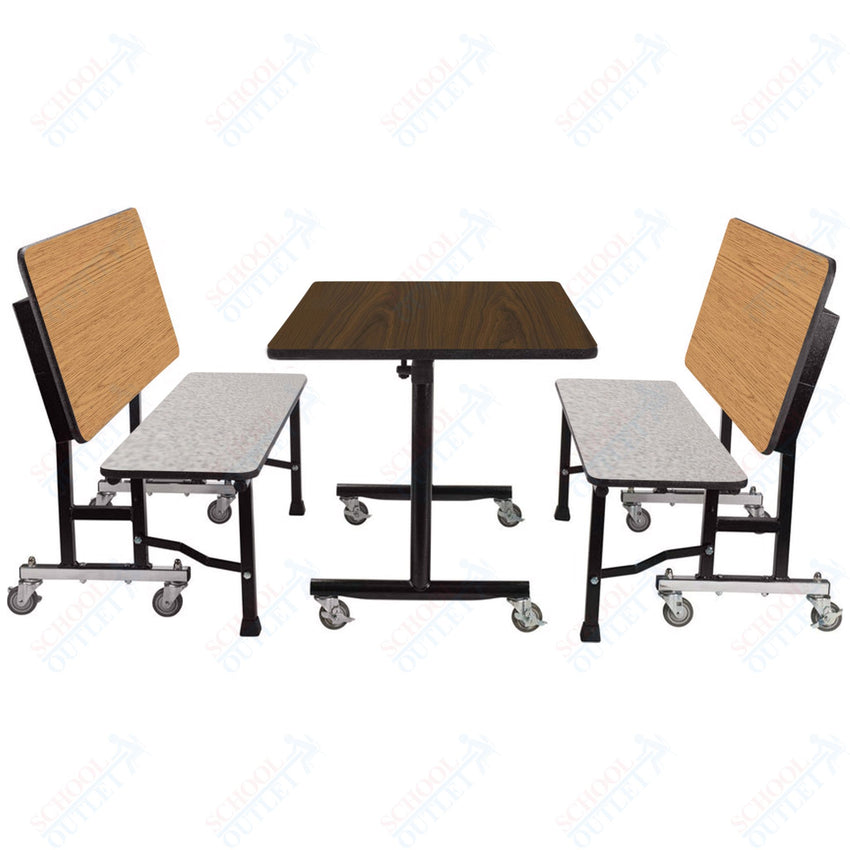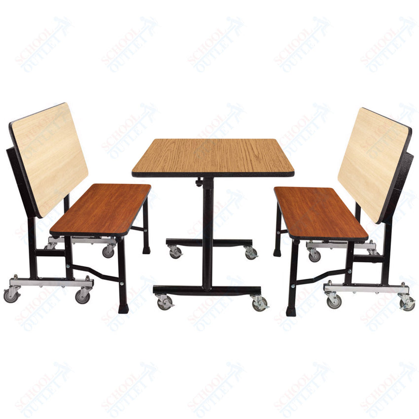 Today's cafeterias have become multi-purpose spaces which require furniture that is mobile and multi-functional. NPS's ToGo Booth System is ideal for such an environment. Built with 14 gauge steel, 2" tube legs, and double ball bearing non-marring 3" casters, the ToGo provides the ultimate in strength and mobility. It's simple to reconfigure for multi-purpose use. The ToGo benches feature fixed high backs with a slight 12-degree pitch providing the perfect contour for comfortable seating. Rubber Grip-Tight glides automatically engage with the floor when opened along with locking casters to keep your seating arrangement nicely in place. ToGo Tables come in a choice of MDF or particleboard core with various laminate color options. Tables open and lock automatically and are easily released with a pull of a handle. The ToGo Bench and Table top flip up and nest for optimal storage. Both are offered in 48" or 60" widths and 24"or 30" depths providing comfortable seating for all sizes.