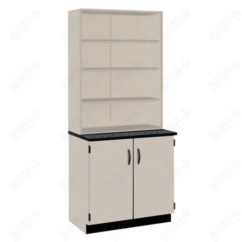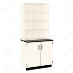 A hutch is a great way to maximize your space and create a finished look in your science lab! This hutch provides storage cabinets below with an adjustable shelf hidden behind the double doors and three adjustable shelves above that are open and easily accessible. The open shelves are specially designed to support heavier items, making this unit ideal for your science lab. Use this shelving system on its own, or add it with other pieces to customize your lab.