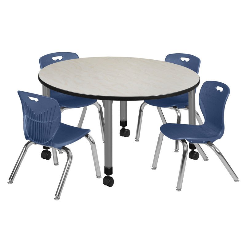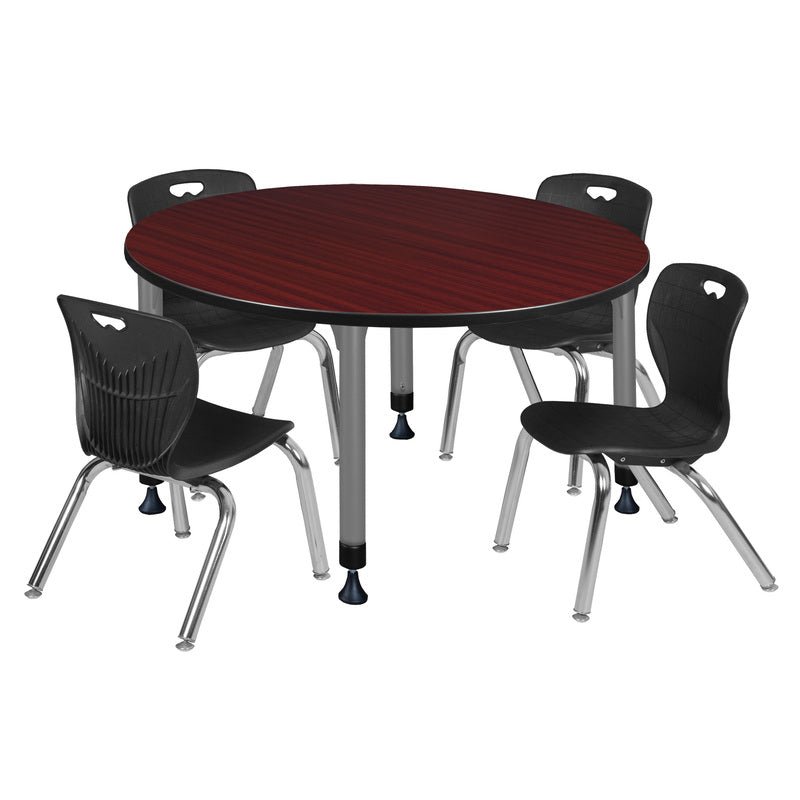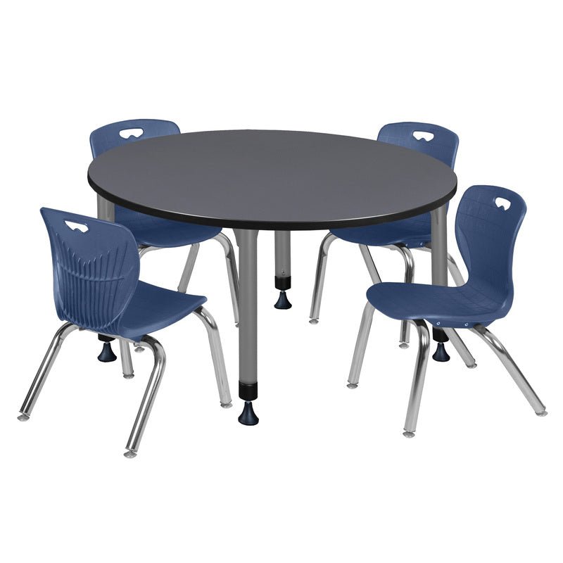 Regency Kee 48 in. Round Adjustable Classroom Table & 4 Andy 12 in. Stack Chairs