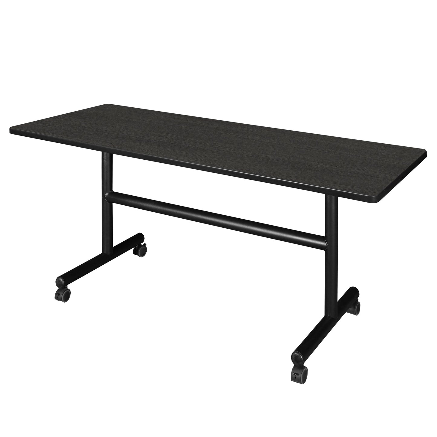 Set up a meeting room in a flash with Kobe Flip Top Tables. Unlock the quick-release lever and flip down the entire tabletop to nest together when not in use. Perfect for rooms with variable class size, the Flip Top tables save set up time and storage space. This 60-inch long table is constructed of a thermal fused melamine laminate tabletop that is 1-inch thick and finished with a black T-Mold edge band. The tabletop is double-sided and finished on the other side. Simply pick the side you like and install the base on the other. Self tapping wood screws and a placement template are included. Laminates are scratch, stain and scald resistant and wipe clean easily. Rounded corners make the table safer for everyone. The base is constructed of black tubular steel. Locking casters make these tables mobile and are ideal for computer labs, training rooms, classrooms and more. Kobe tables are backed by a 10-Year Limited Manufacturer's Warranty.