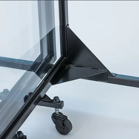 Screenflex uses 3/16-inch crystal-clear OPTIX acrylic to create these versatile clear panels. OPTIX acrylic is non-yellowing, lightweight and highly impact-resistant. Our plexiglass room dividers are three times as strong as double-strength window glass. For added durability, our translucent wall panels are affixed to the custom anodized extruded aluminum channels with a silicone adhesive. Minor assembly is required for one panel clear dividers.