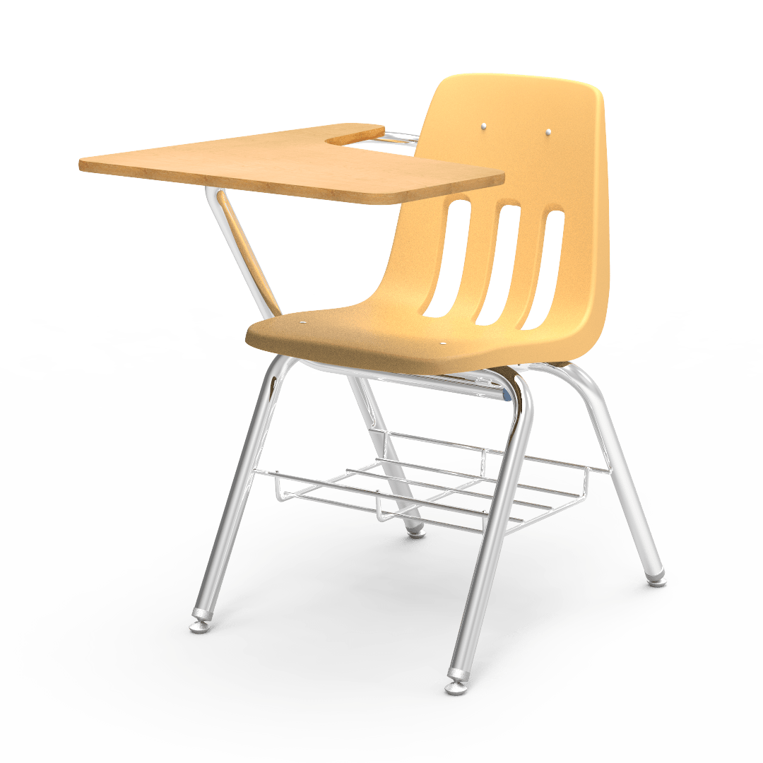 Virco 9700BR Student Tablet Arm Chair with Desk for Schools and Classrooms 18" Seat, Tablet-Arm Laminate Top, Bookrack