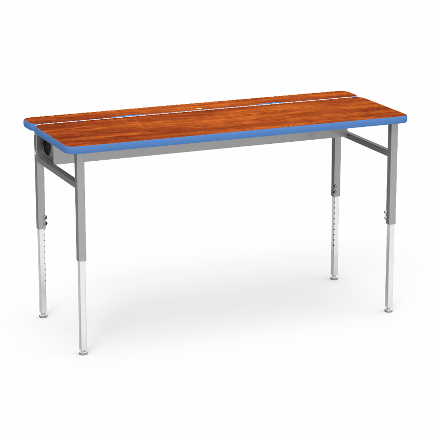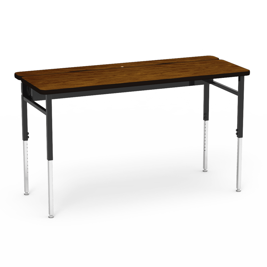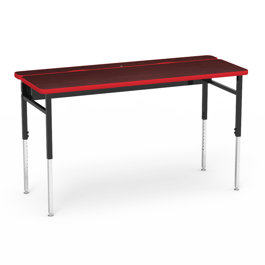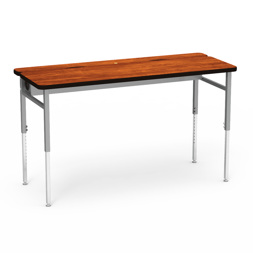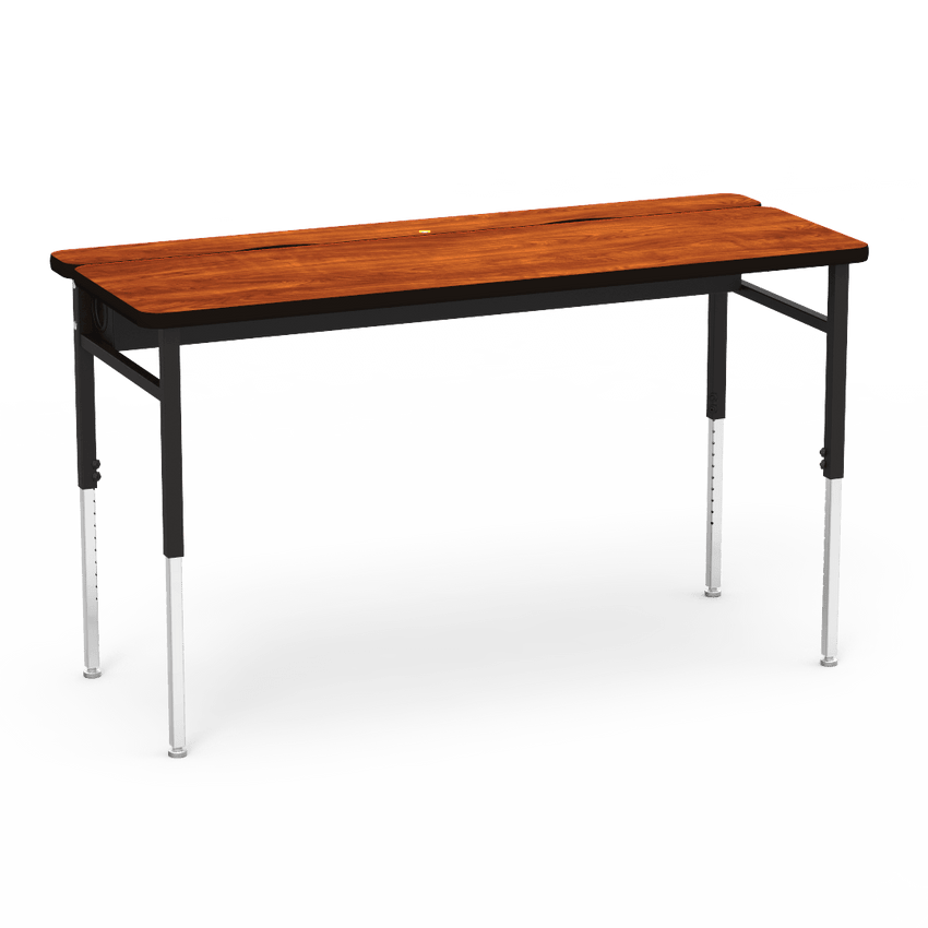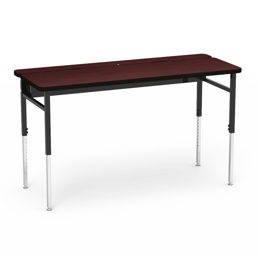 Tubular steel frame. Models feature a convenient 6" deep lockable flip-top compartment for enhanced wire and cable management. Adjustable top height of 24" - 34".