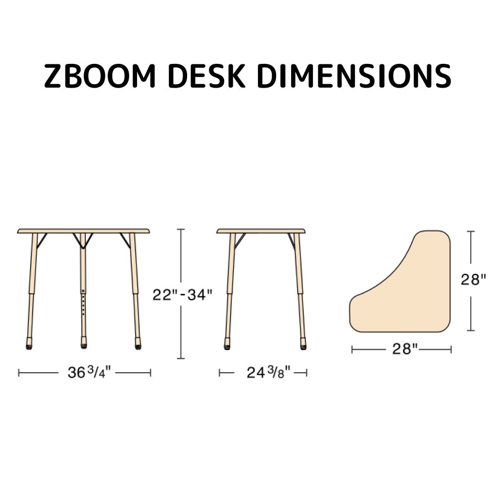Triangular shaped ZBOOM desks can be arranged in multiple configurations. Virco has the perfect solution to collaborative learning activities. The ZBOOM models can be easily grouped in four-desk clusters, or set side by side for any size group configuration. The desks have adjustable height legs from 22" to 34" making them suitable for students of all ages.