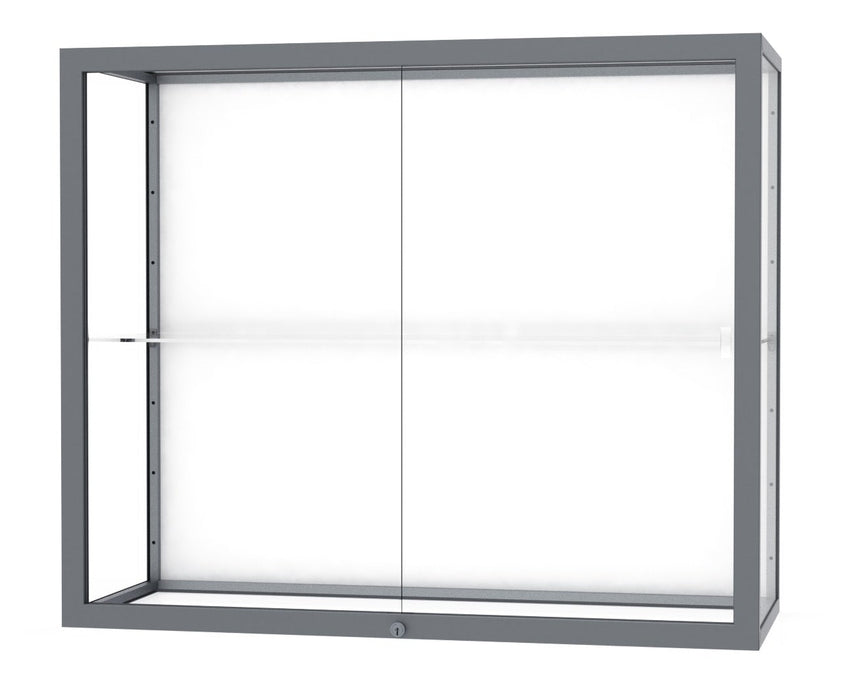Ghent Champion Wall-Mounted Display Case, White Laminate Back, Aluminum Frame, 1 Shelf, 36"H x 30"W x 14"D